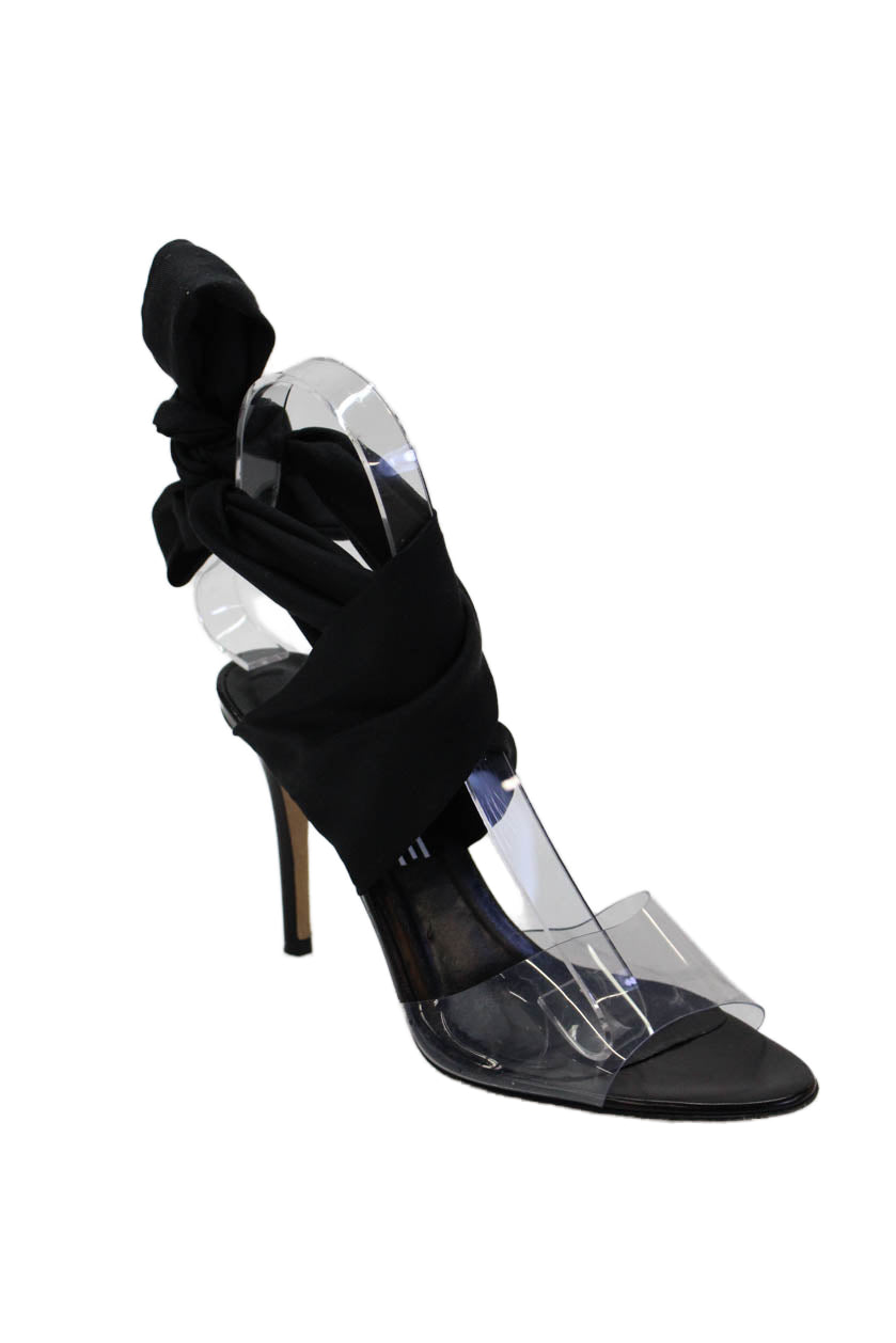 Monse Womens Stiletto PVC Knit Ankle Strap Sandals Black Clear Size 36