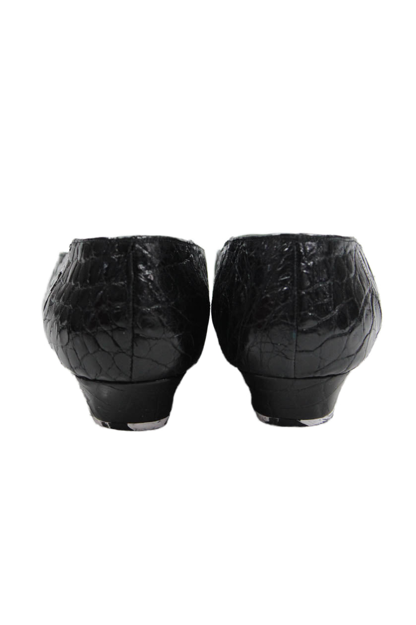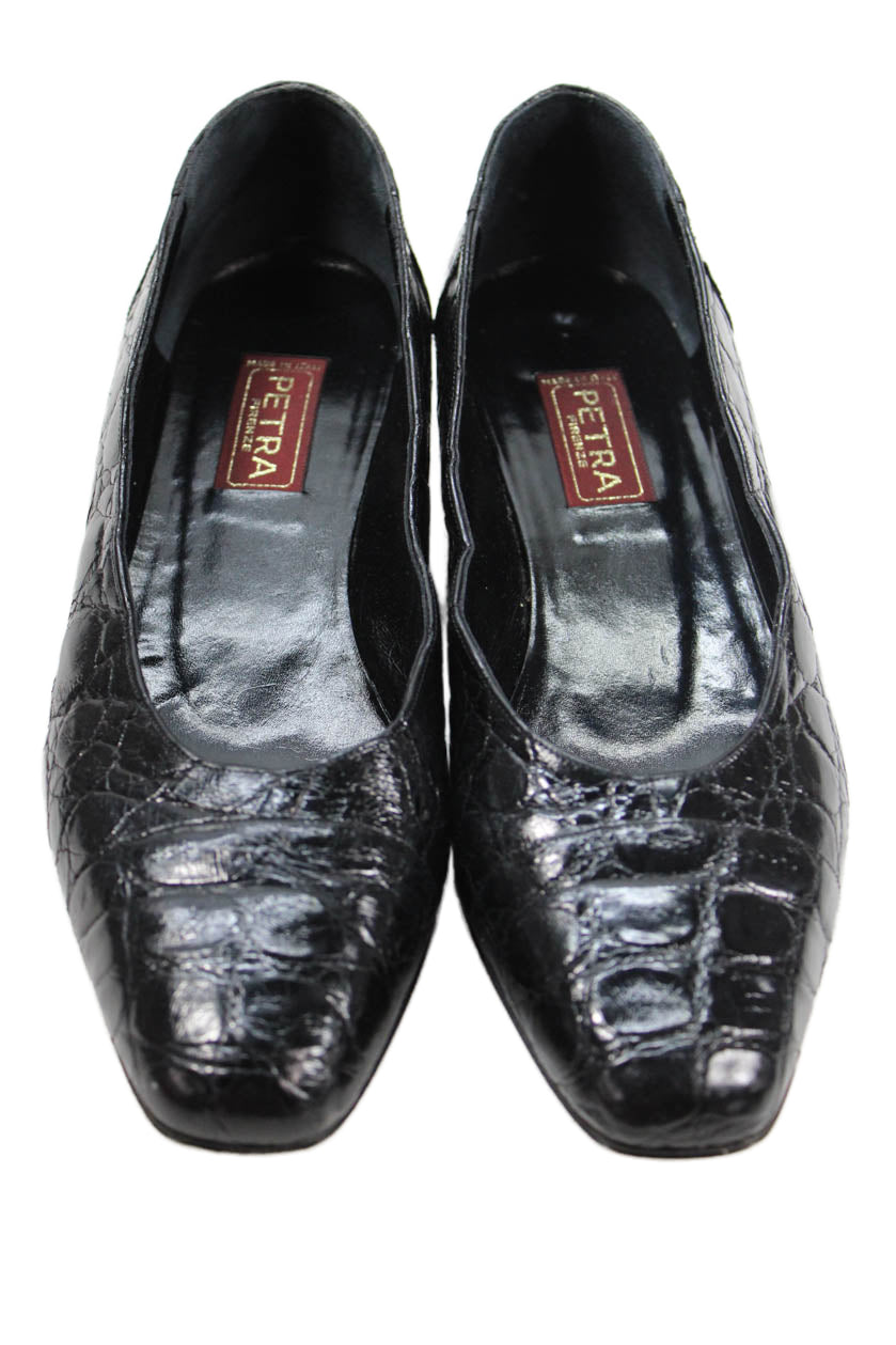 • Petra Firenze Womens Leather Embossed Slip On Flats Black Size 10
