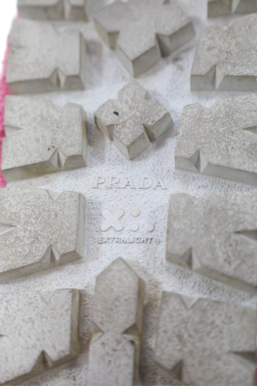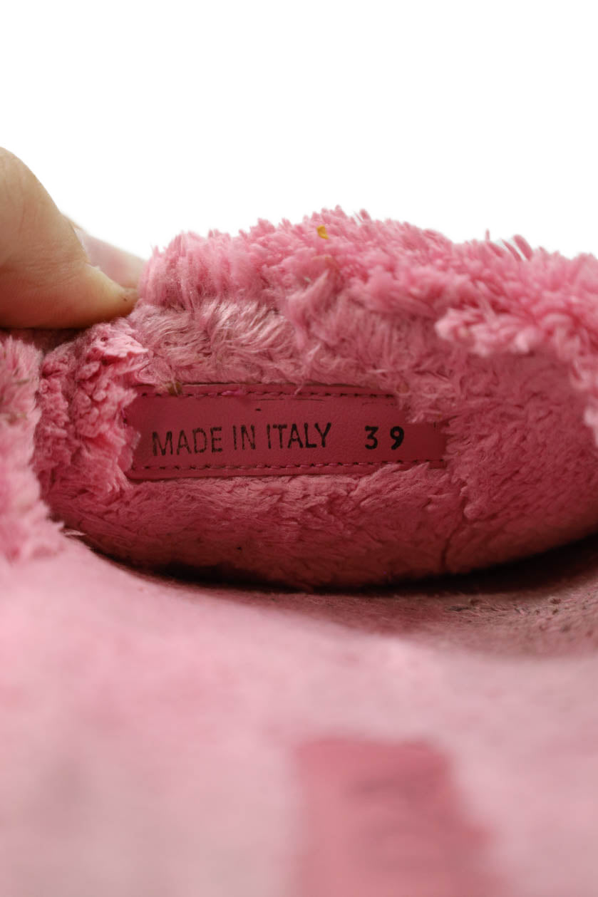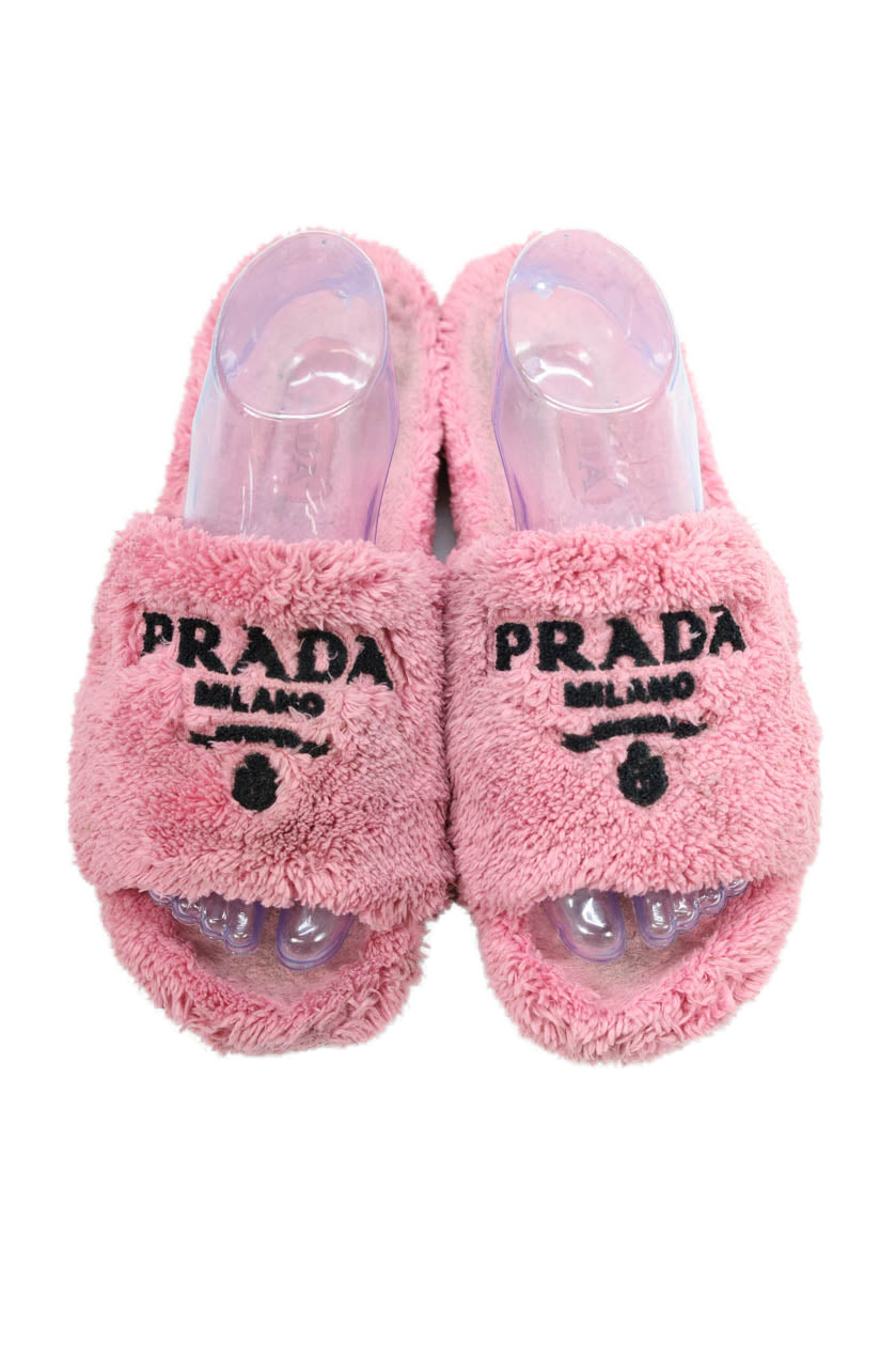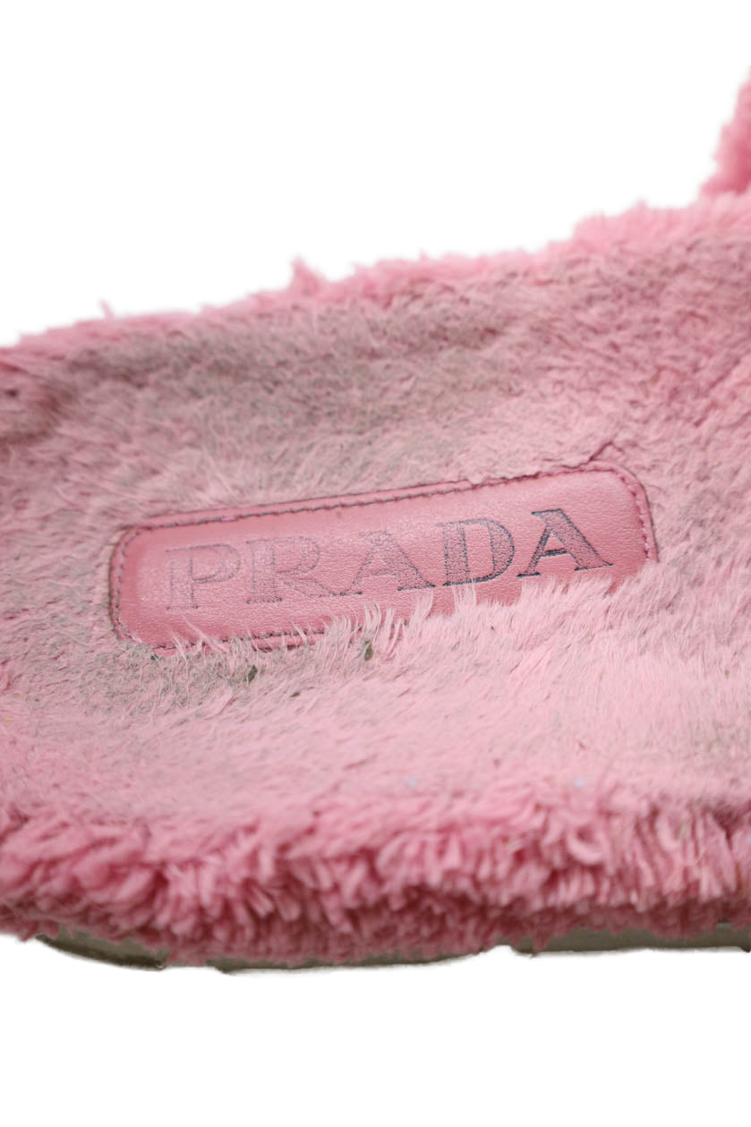 Prada Womens Single Strap Logo Terry Slide Sandals Pink Black Size 39