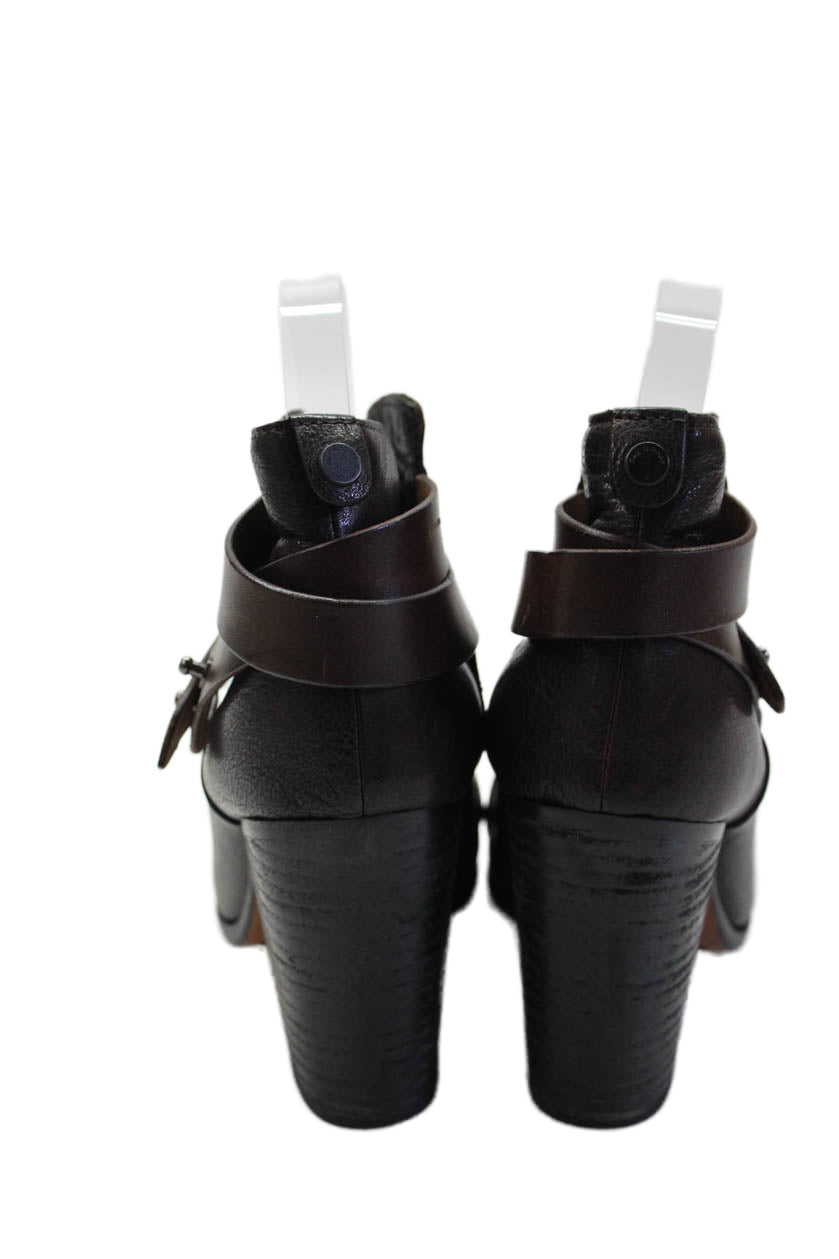 Rag & Bone Womens Block Heel Cap Toe Ankle Booties Brown Leather Size 38