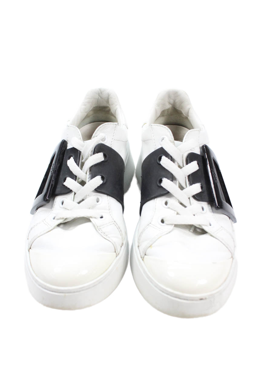 Roger Vivier Womens Leather Chunky Buckle Detail Sneakers White Size 5