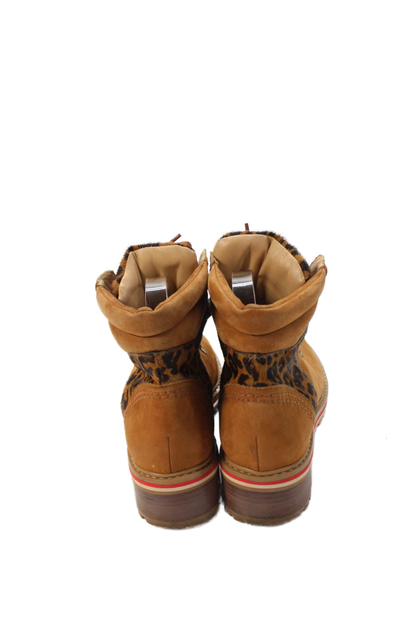 Schutz Womens Animal Print Lace Up Ankle Boots Brown Black Size 38 8