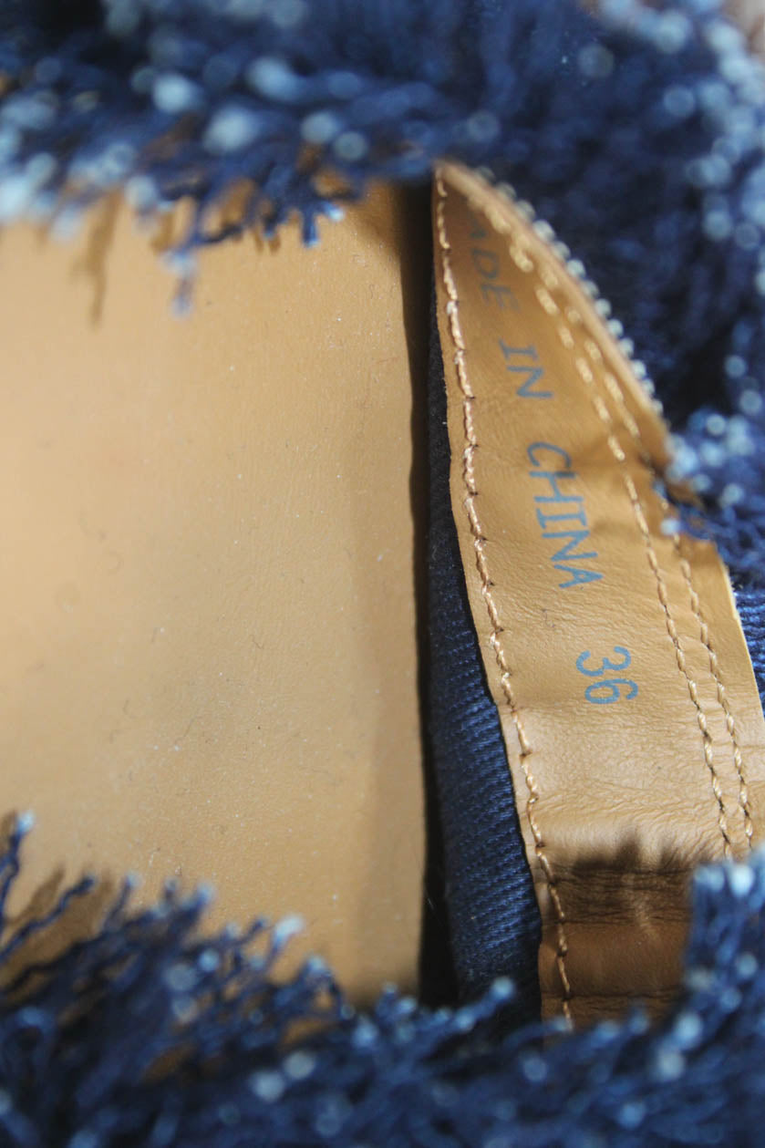 See by Chloe Women's Fringe Round Toe Espadrille Denim Sandals Size 36