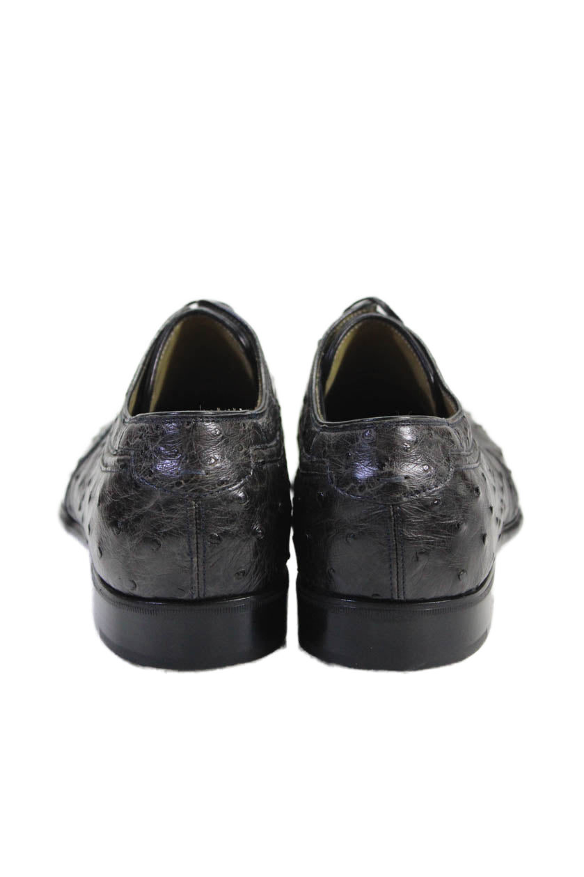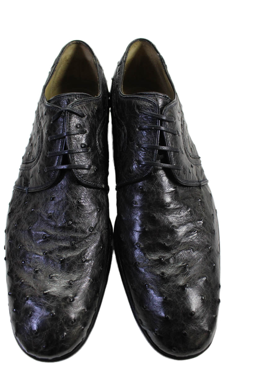 Tardini Mens Ostrich Skin Lace Up Oxford Dress Shoes Black Size 8