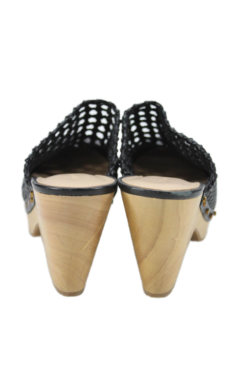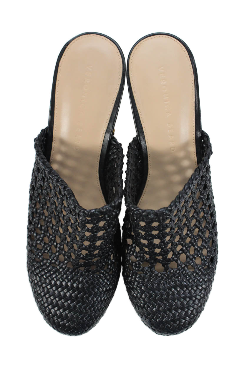 Veronica Beard Womens Leather Woven Slide On Mule Heels Black Size 8.5 Medium