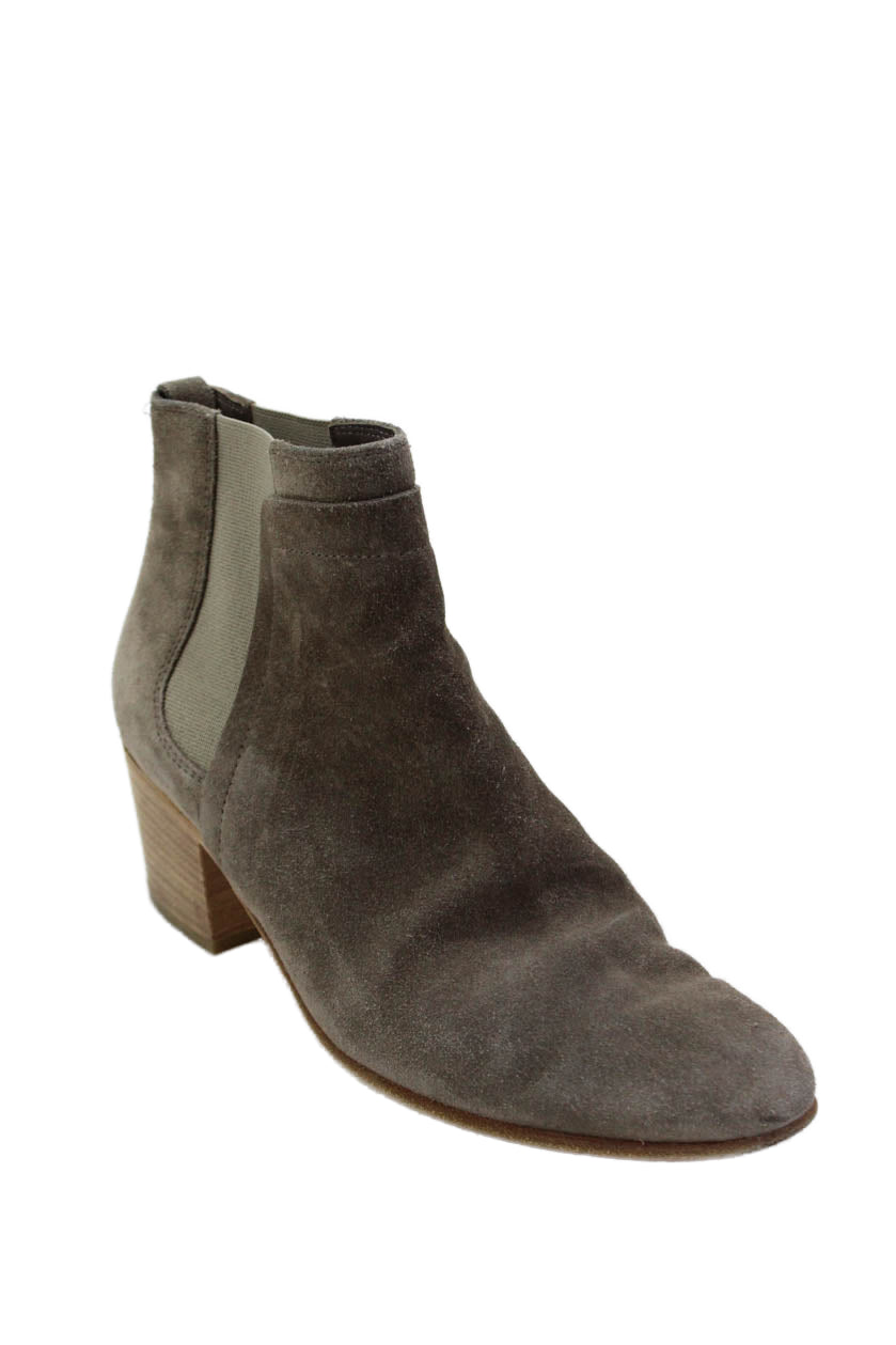 Vince Womens Suede Textured Lined Block Booties Tan Size 6.5