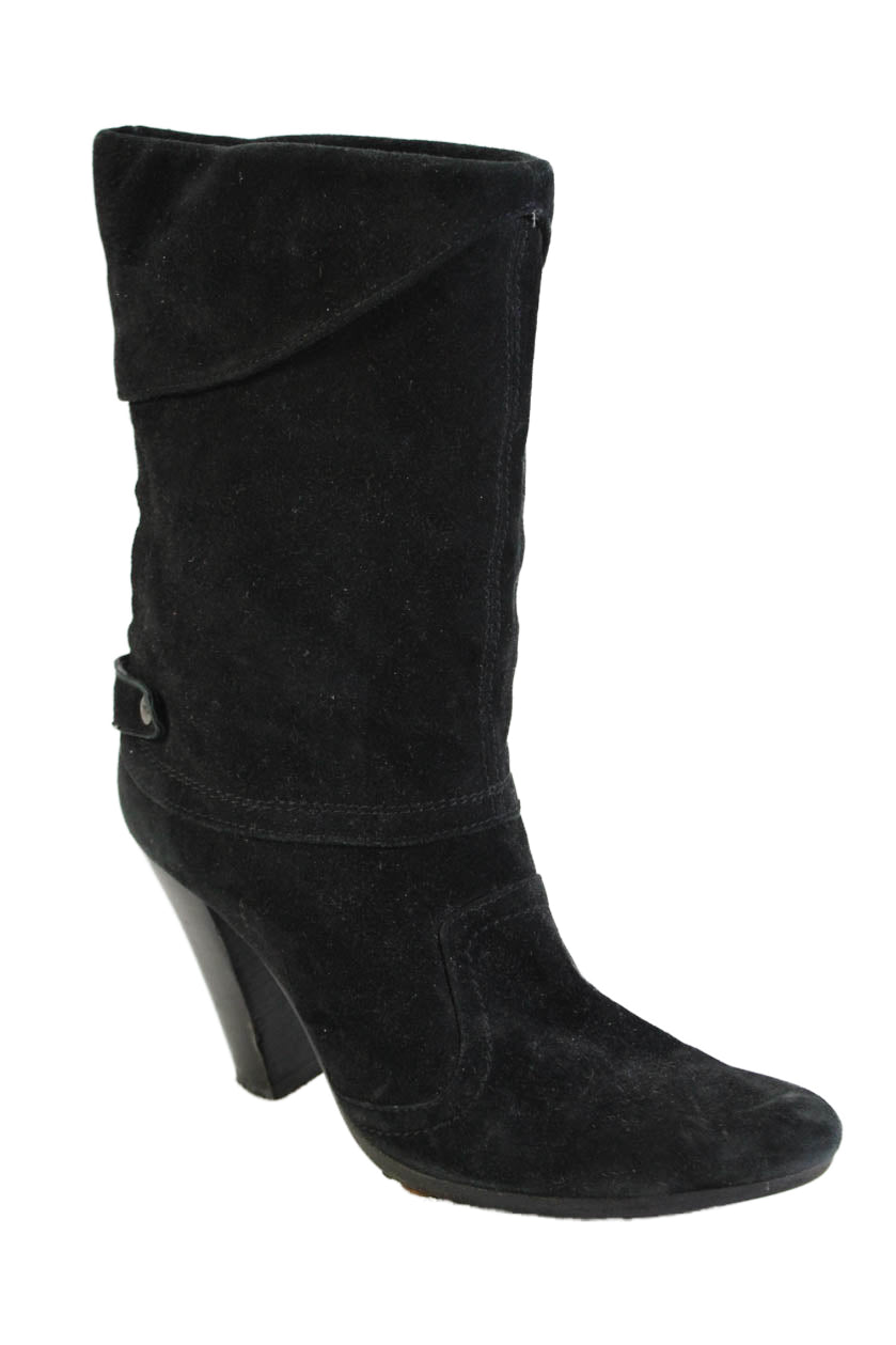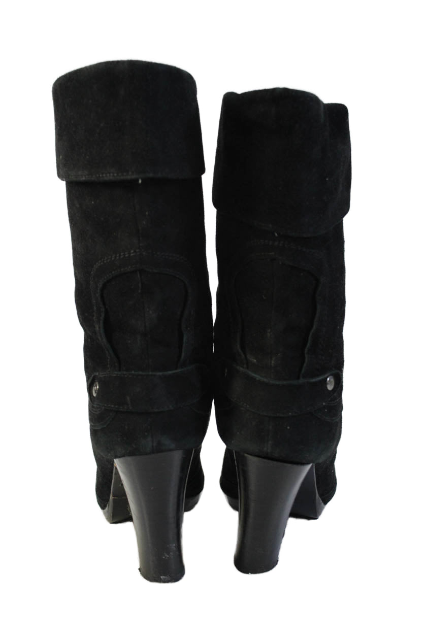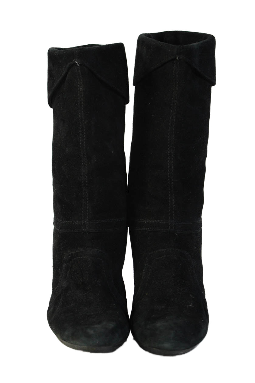 Weekend Max Mara Womens Suede Heeled Mid Calf Boots Solid Black Size EUR 37