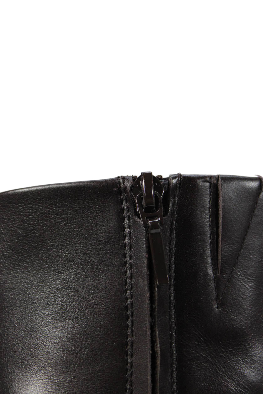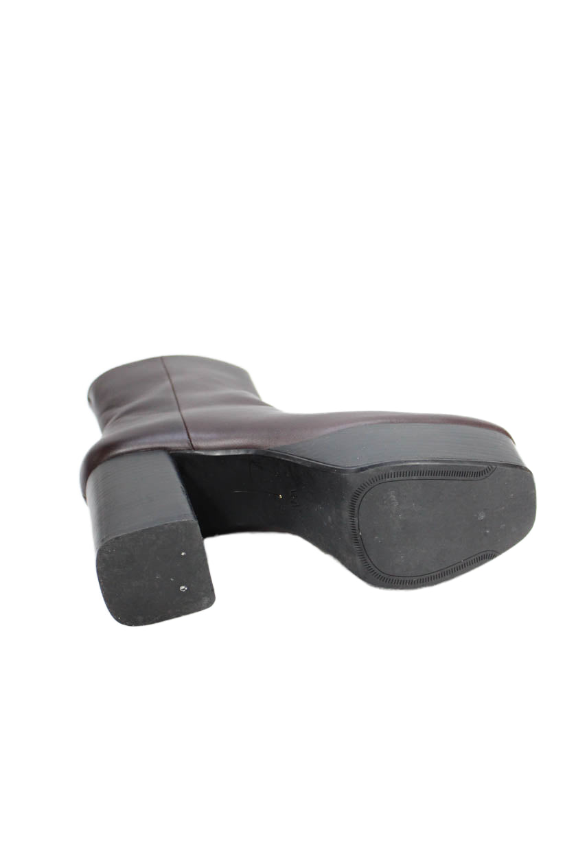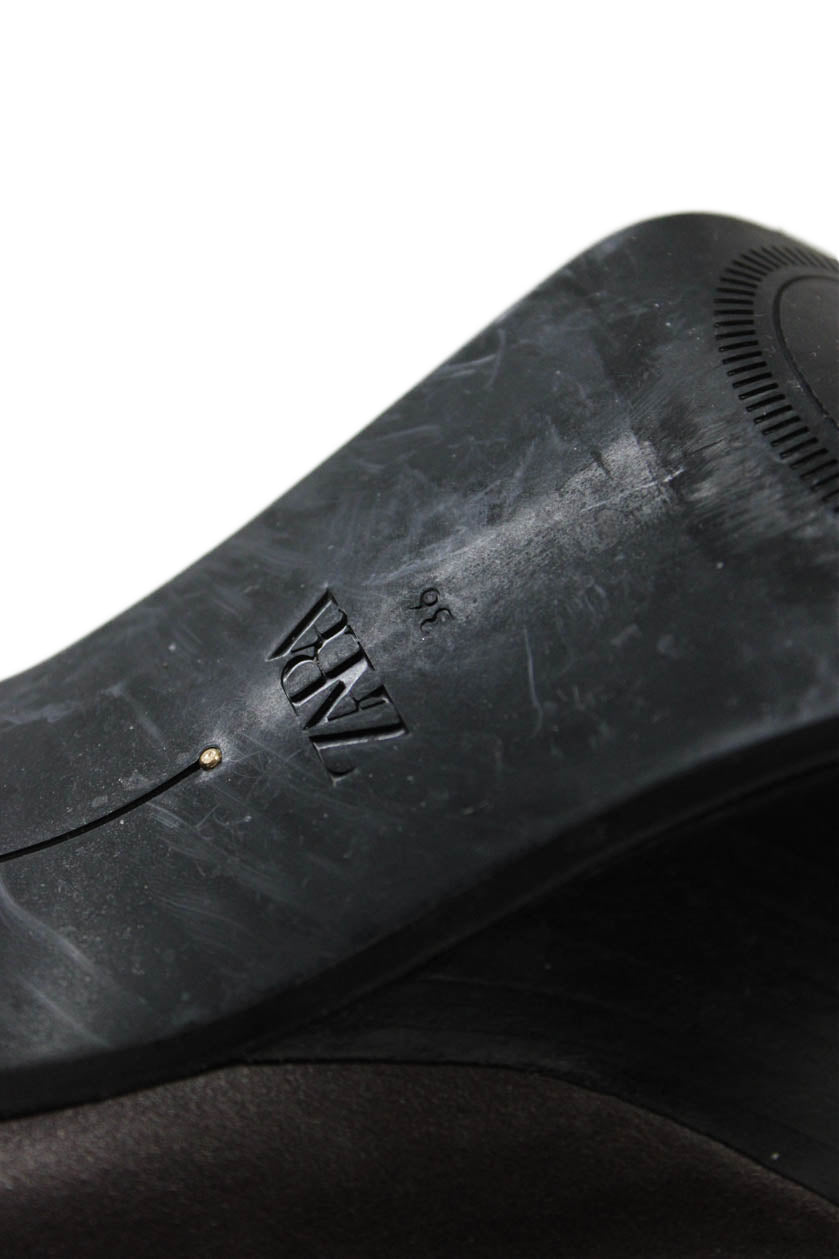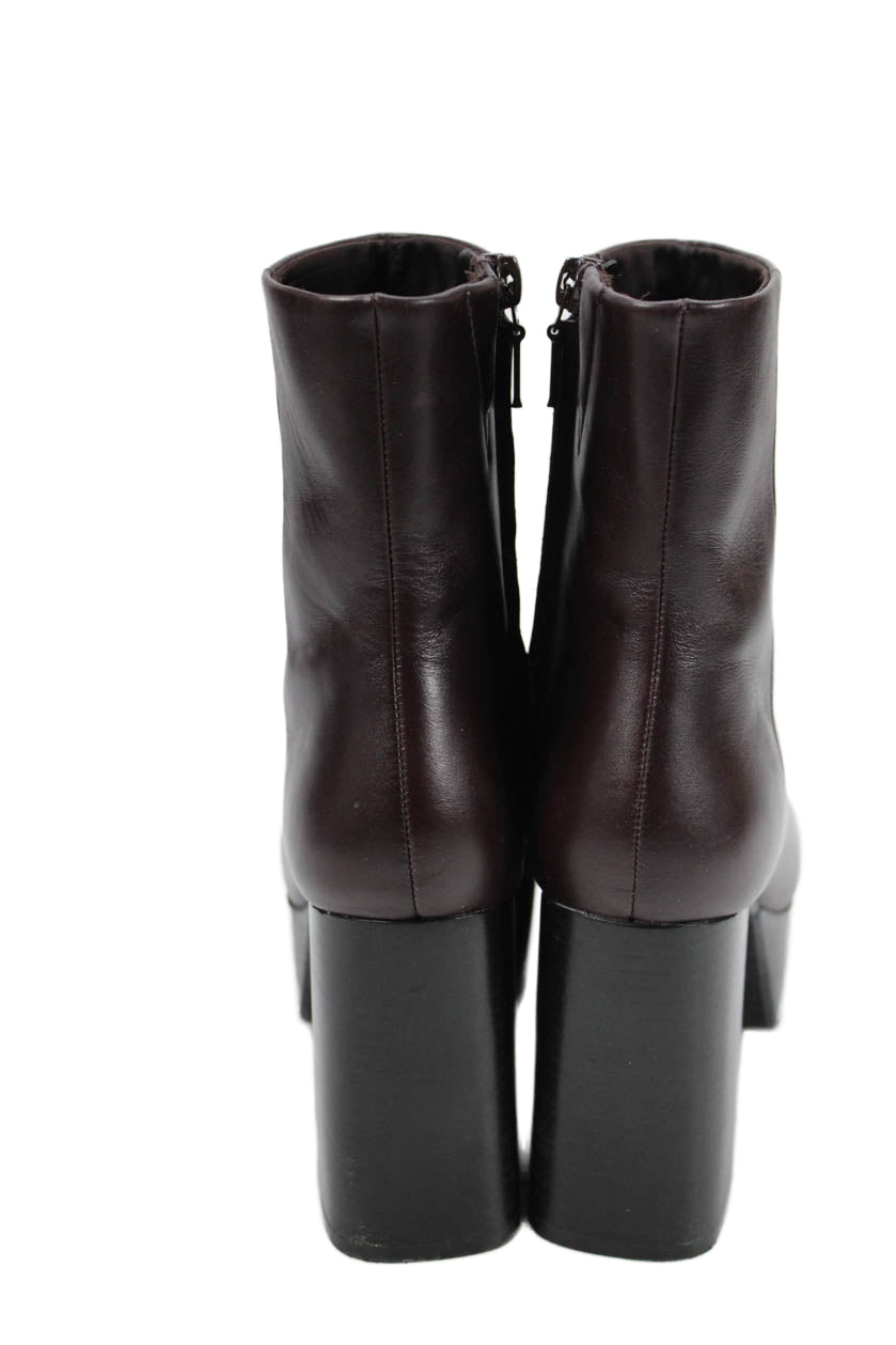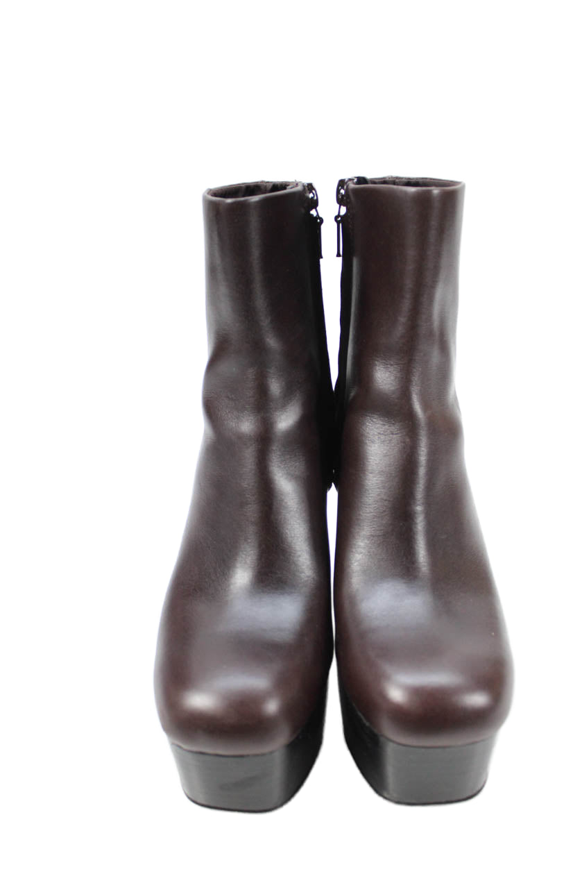 • Zara Womens Side Zip Block Heel Platform Booties Brown Leather Size 36