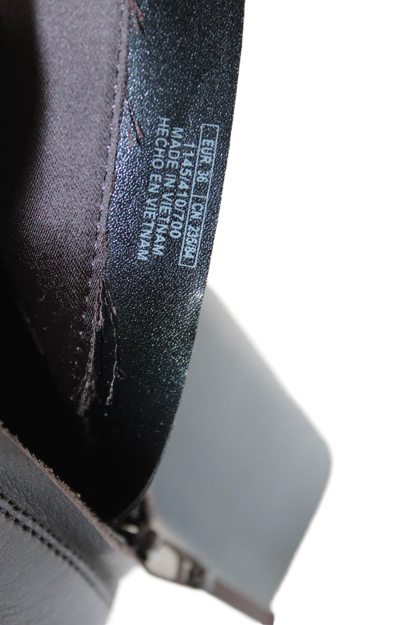 Zara Womens Side Zip Block Heel Platform Booties Brown Leather Size 36