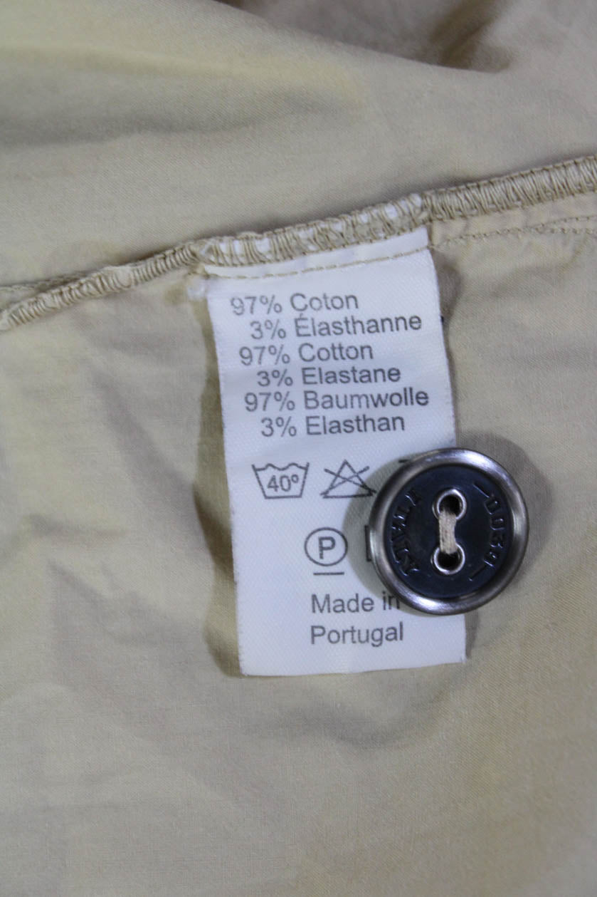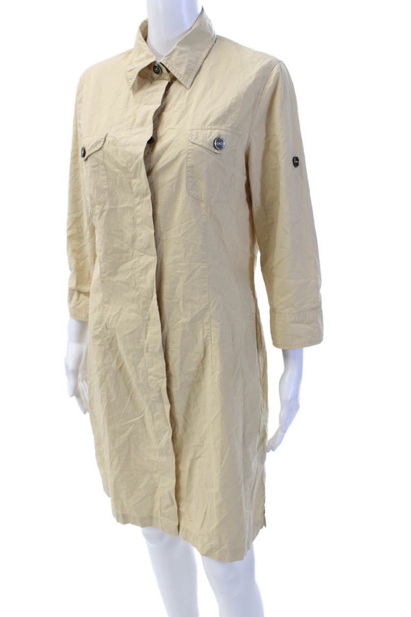 0039 Italy Womens Button Front Short Sleeve Collared Dress Beige Size Large