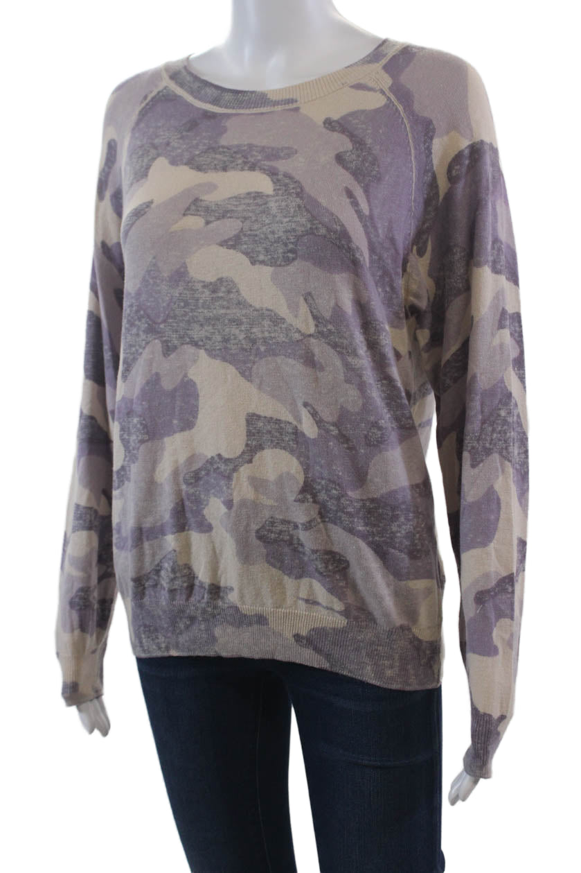 • 27 Miles Womens Long Sleeve Scoop Neck Camouflage Sweater Purple White Medium