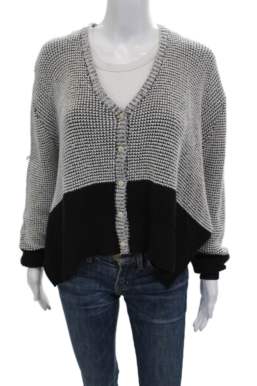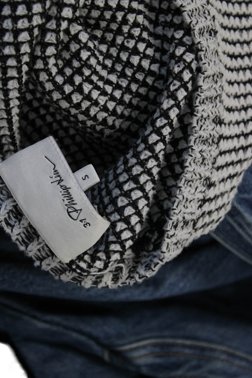 3.1 Phillip Lim Womens Cardigan Black Cotton VNeck Geometric Long Sleeve Size S