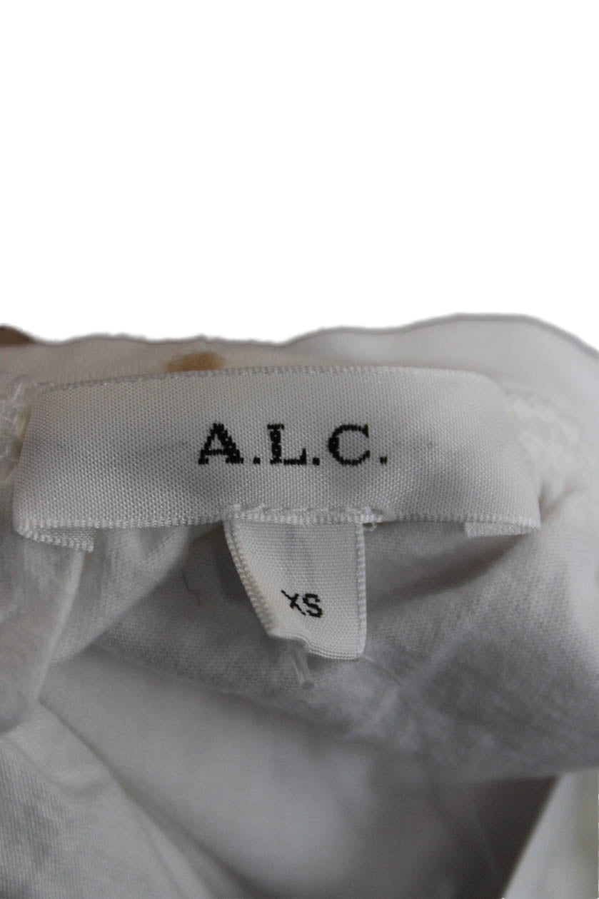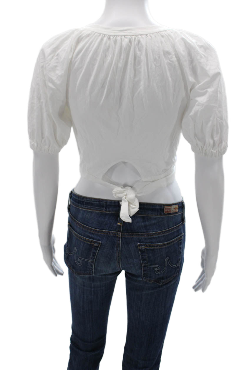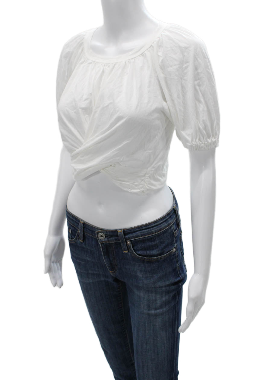 A.L.C. Womens Cropped Cotton Round Neck Peasant Blouse Short Sleeve Size XS