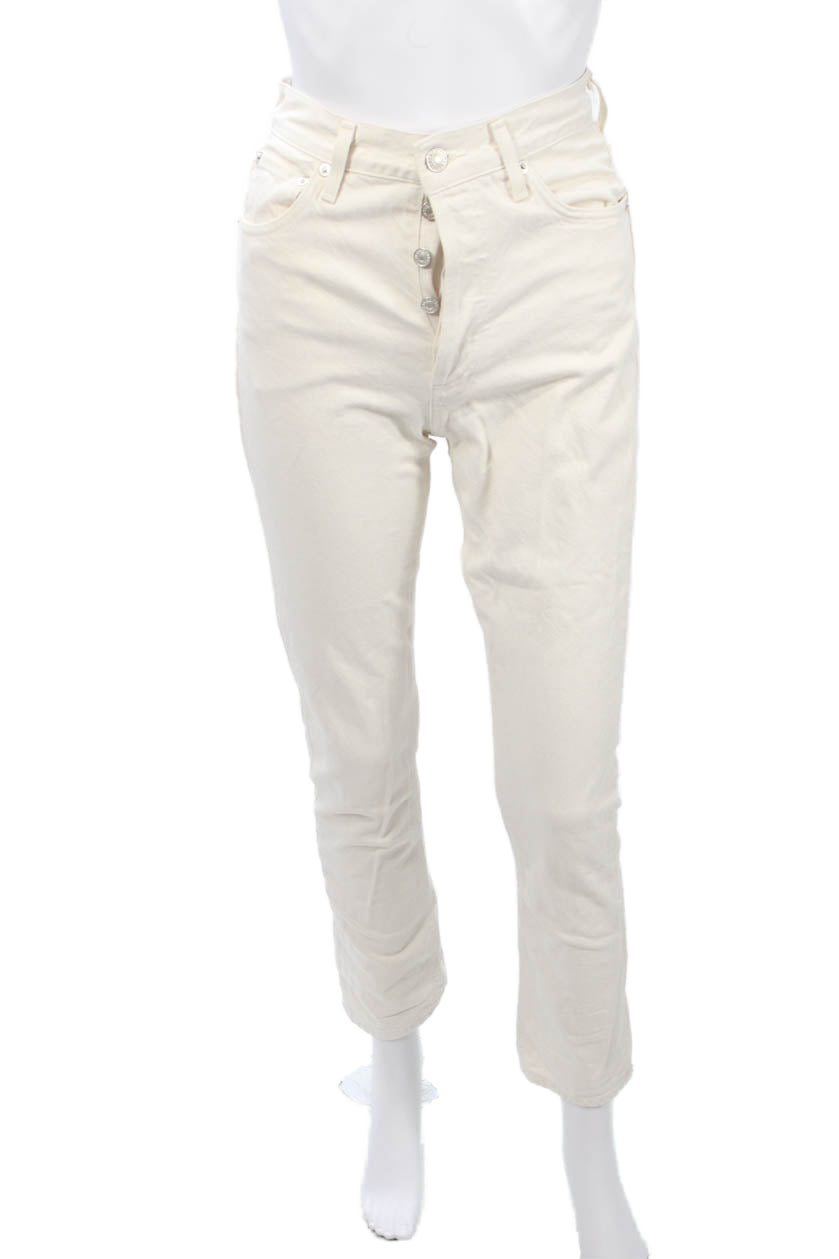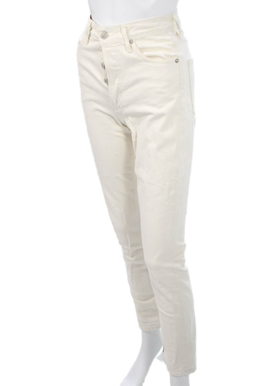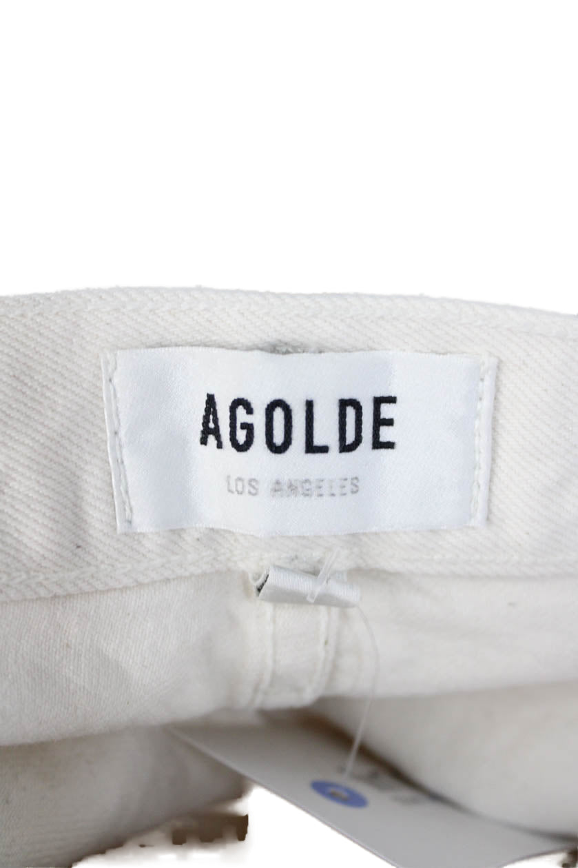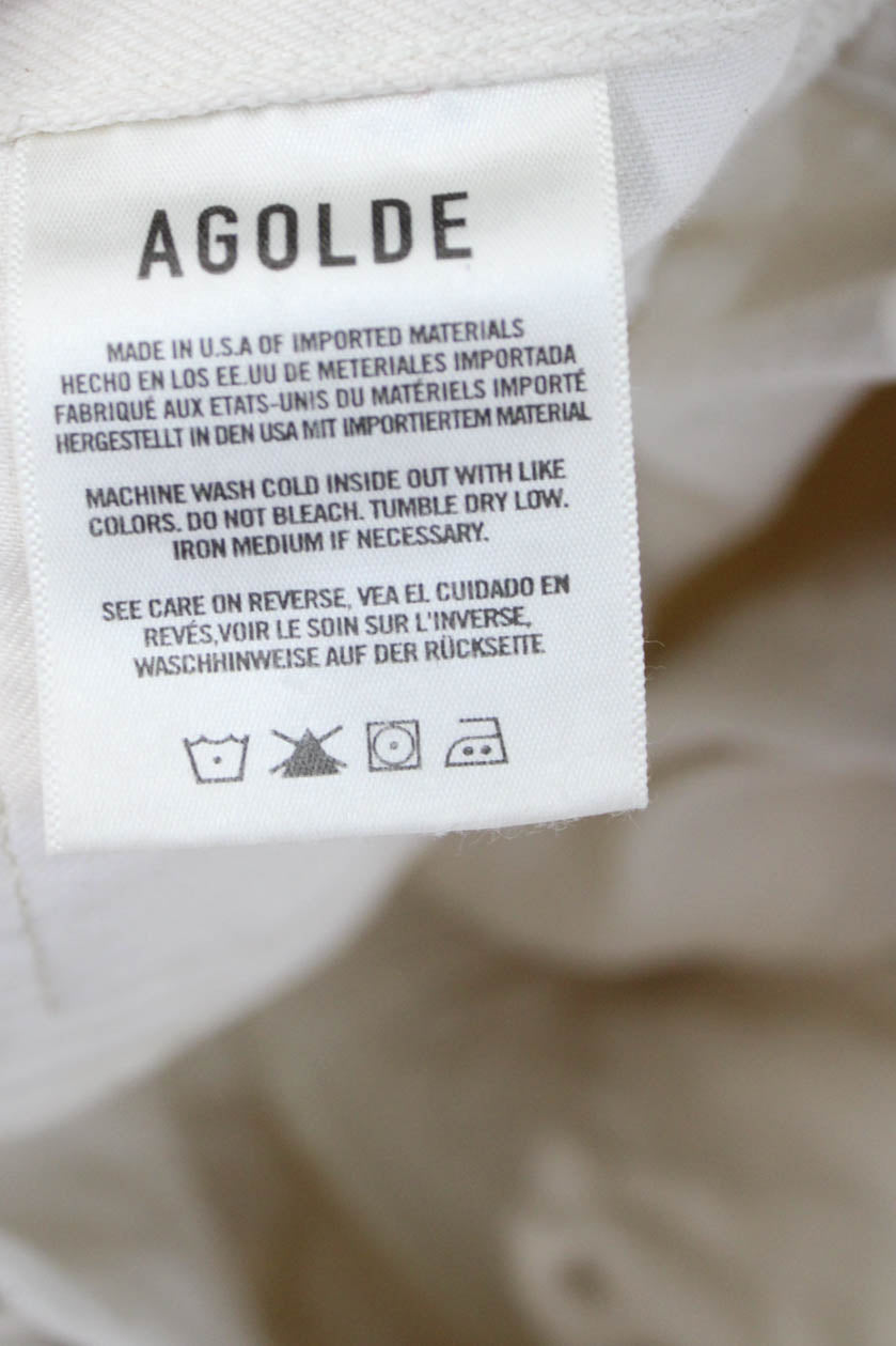 Agolde Women Cropped Beige Mid Rise Cotton Blend Pants Size 23