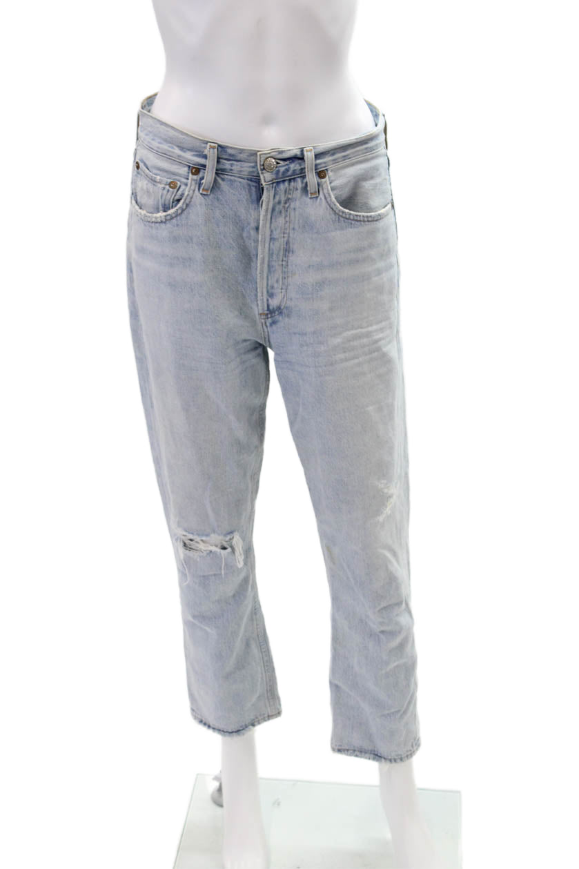 Agolde Womens Button Up Light Wash Skinny Leg Jeans Blue Cotton Size 27