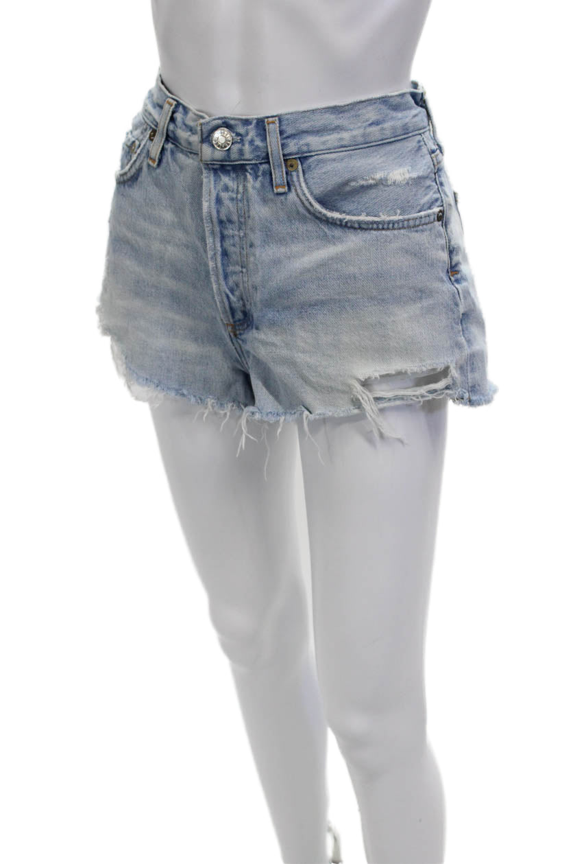 Agolde Womens Light Blue 100% Cotton 90s Button Shorts Size 27