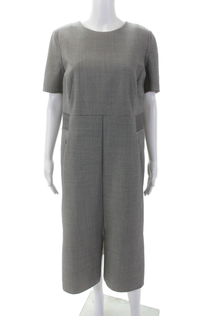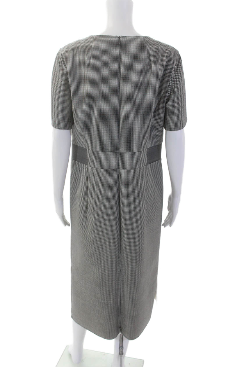 Akris Womens Checkered Short Sleeve Zipped Dress Black White Size 10