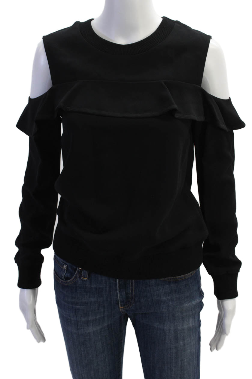 ALC Womens Crew Neck Cold Shoulder Long Sleeve Casual Top Black Size 4