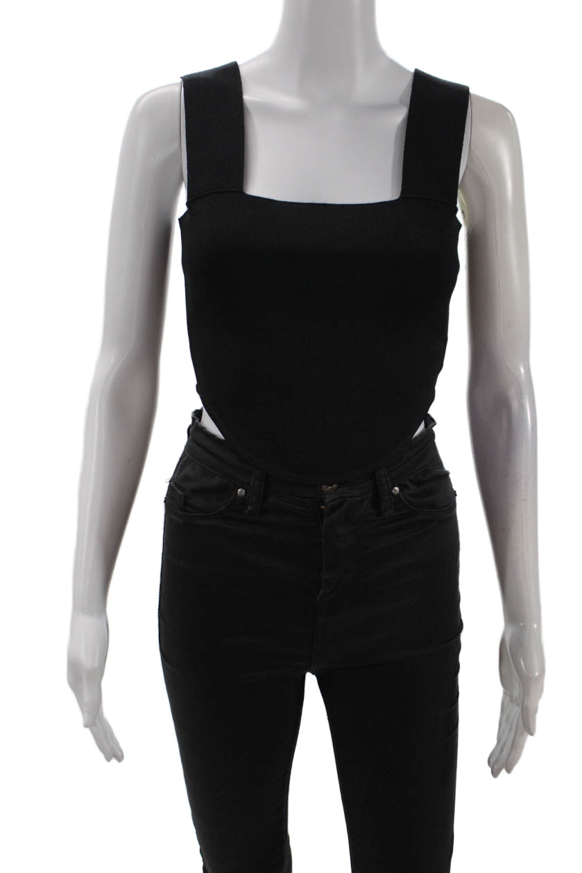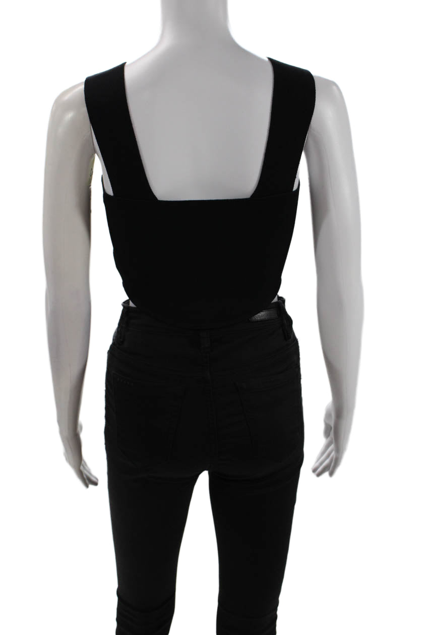 ALC Womens Rounded Hem Detail Square Neck Stretch Crop Top Black Size S
