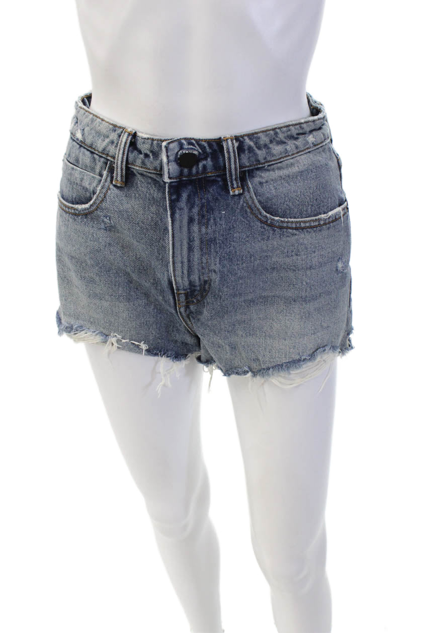 Alexander Wang Women's Five Pockets Medium Wash Cut-Off Denim Shorts Size 28