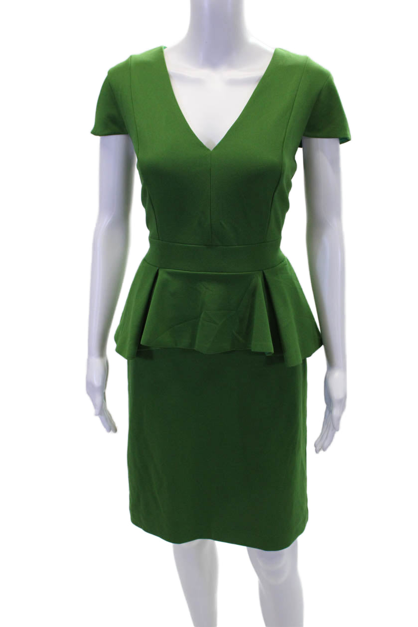 Alexia Admor Womens Textured Lined V-neck Short Sleeve Pleated Dress Green Size