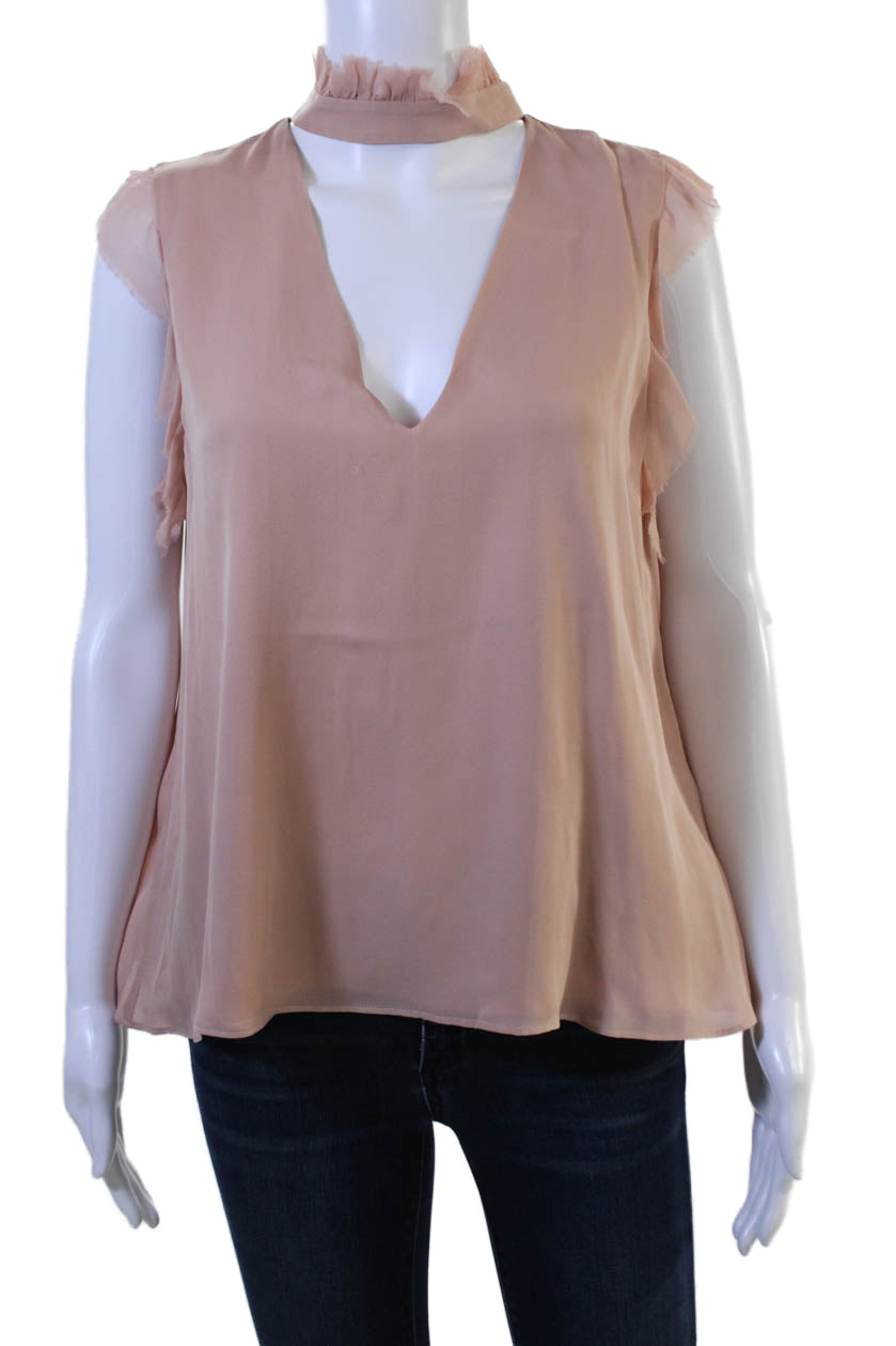 Alexis Women Bohemian Silk V-Neck Sleeveless Blouse Pink Size M