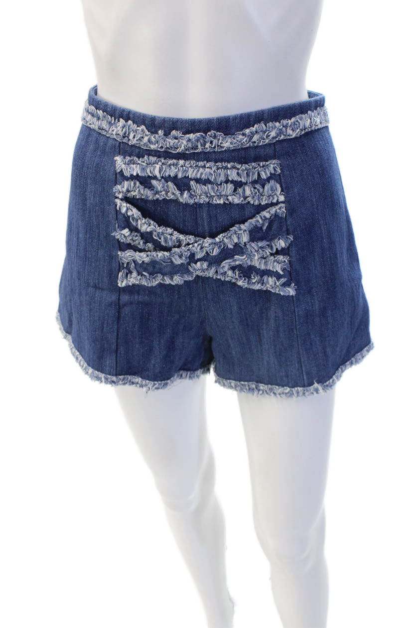 Alexis Womens Bohemian Dark Blue Zip Cotton Blend Shorts Size S
