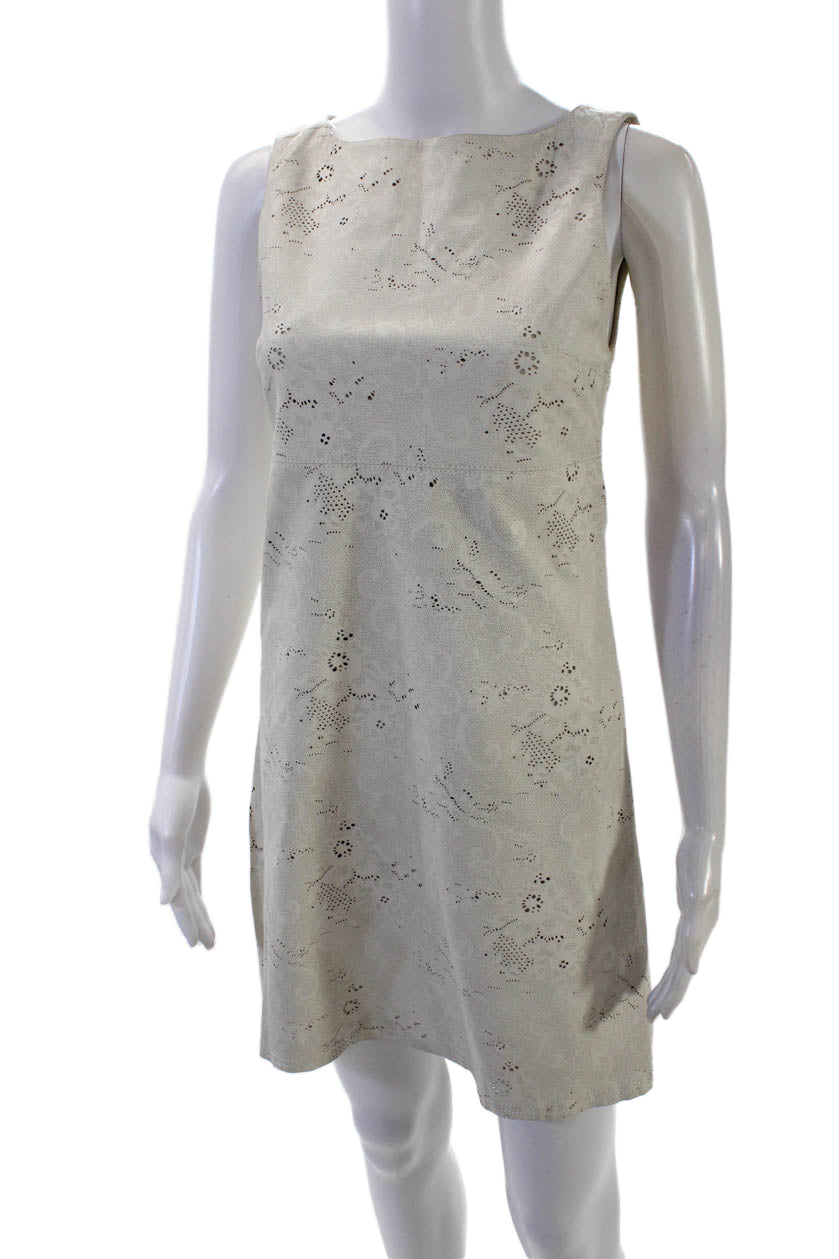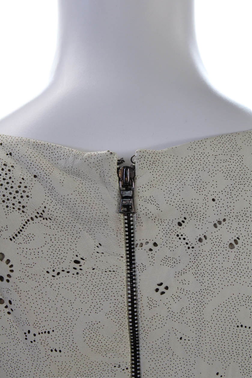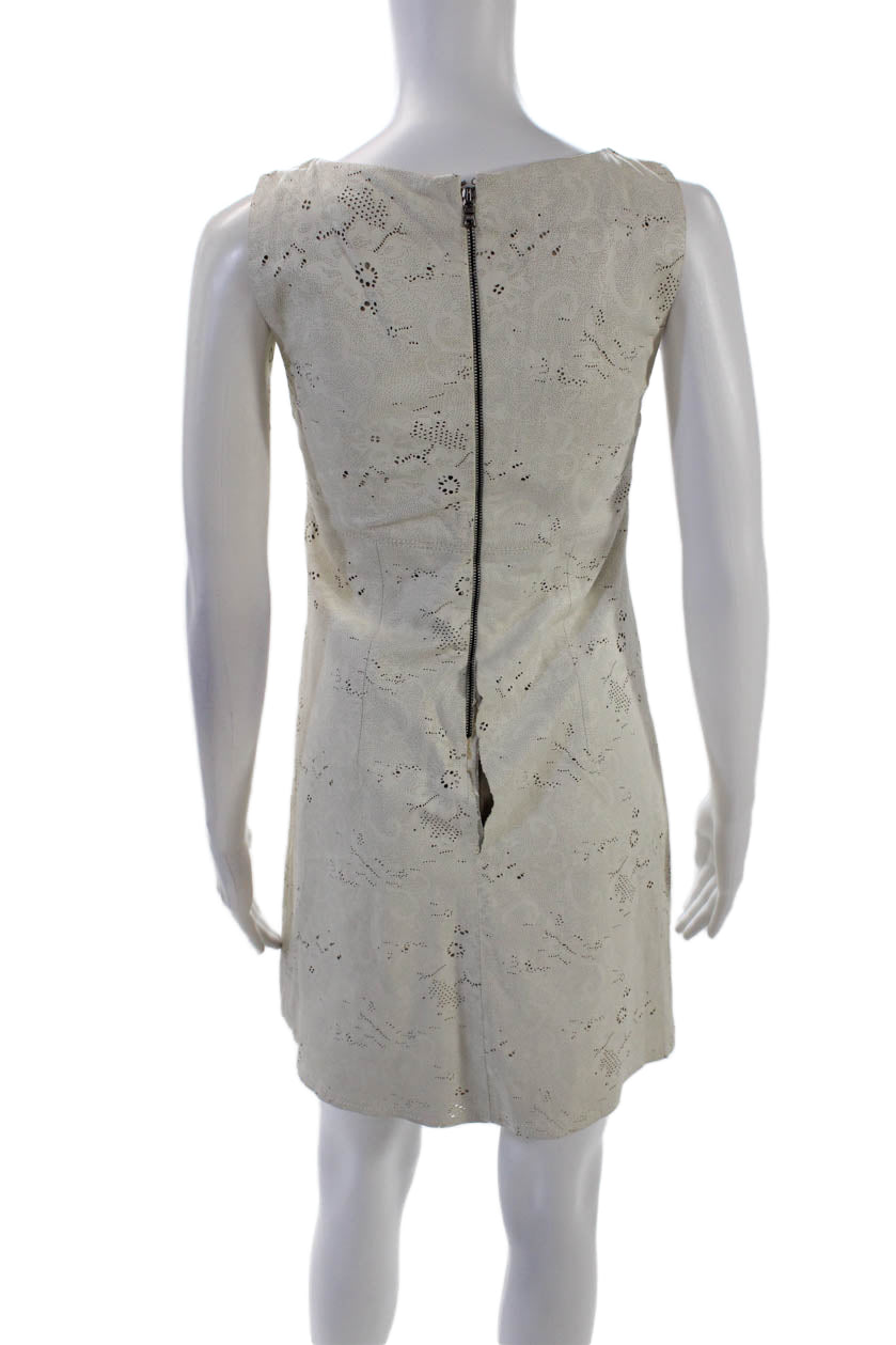 Alice + Olivia Womens Back Zip Laser Cut Leather Shift Dress White Size 4