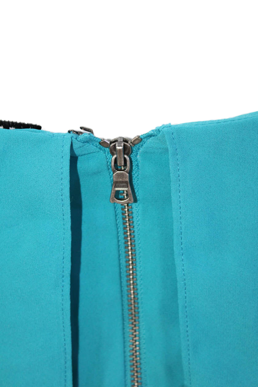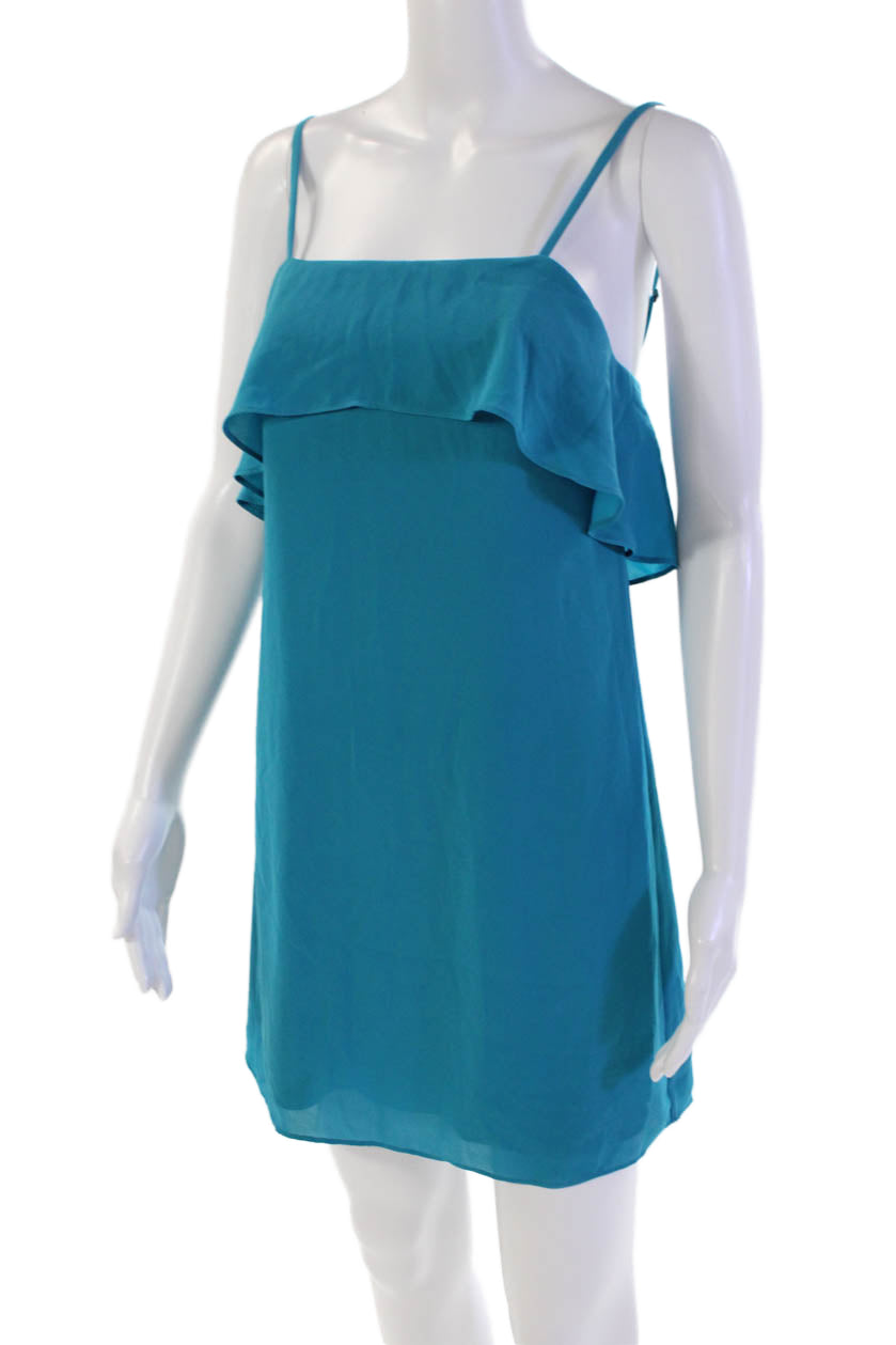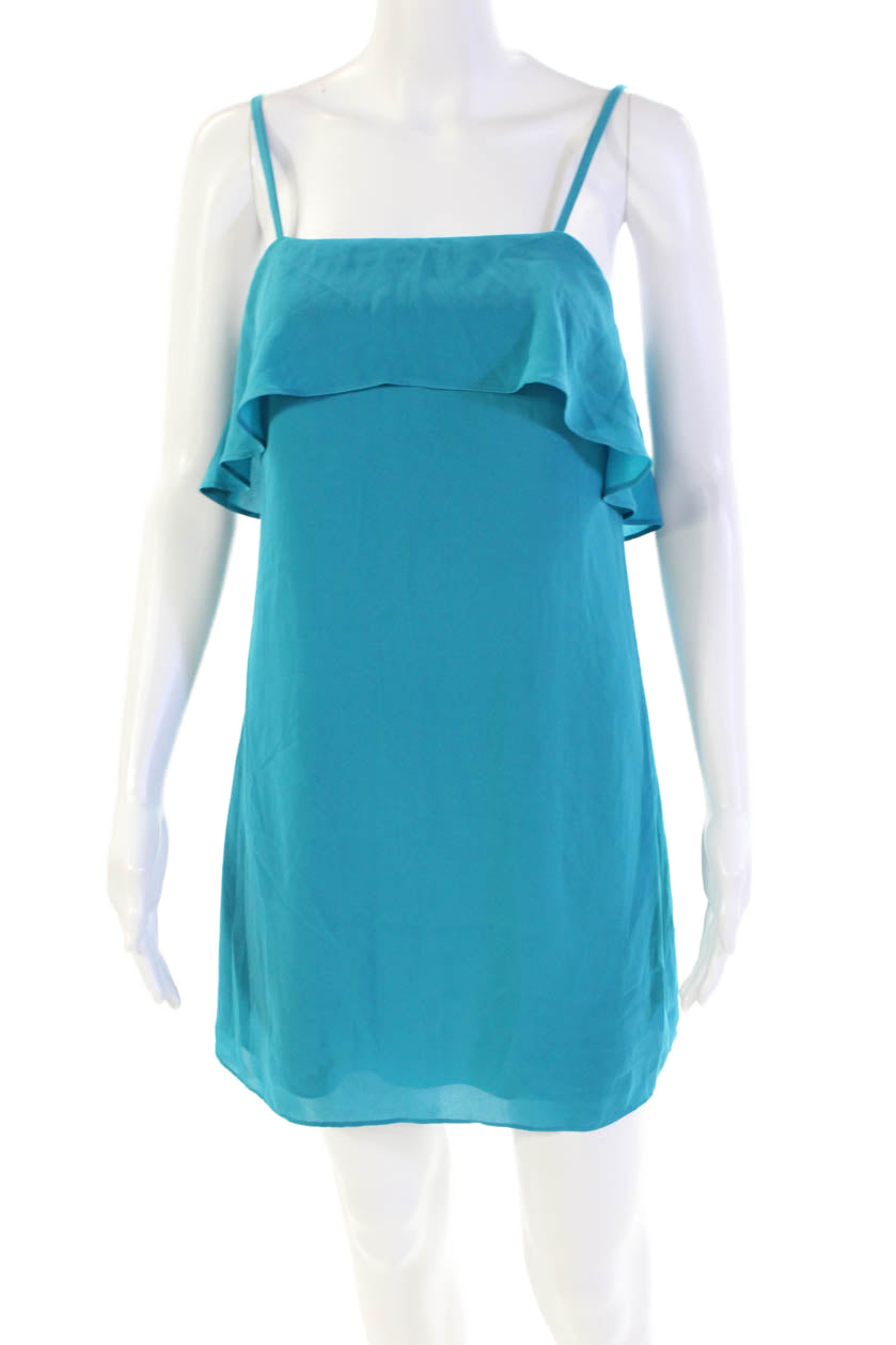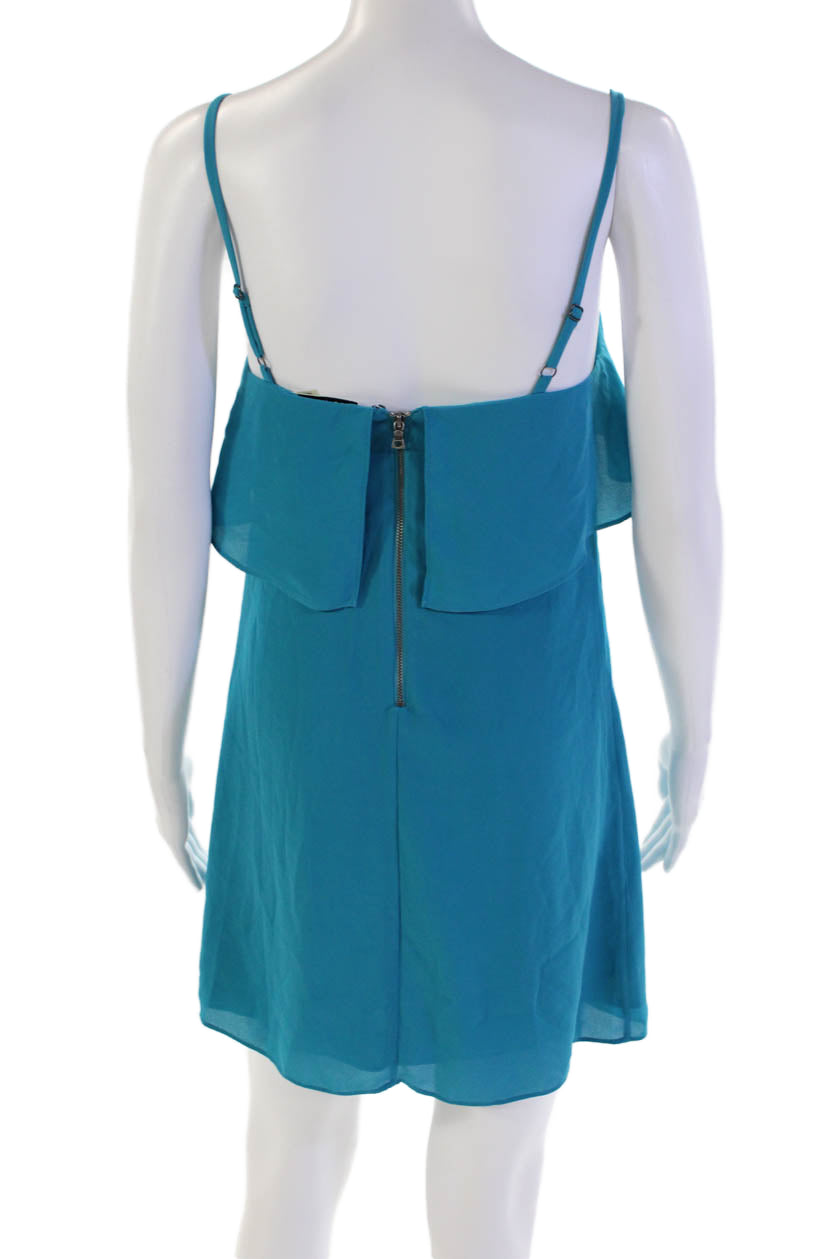 Alice + Olivia Womens Back Zip Sleeveless Square Neck Mini Dress Blue Size XS