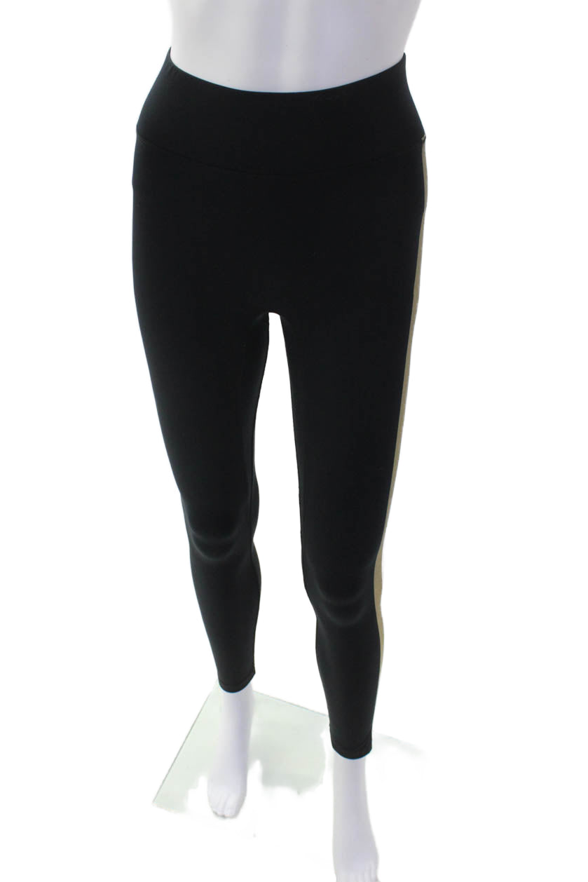 All Access Womens Striped Sides Mid Rise Leggings Black Gold Size Extra Small