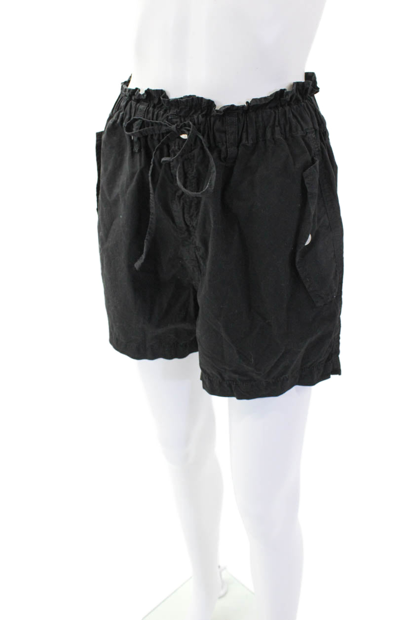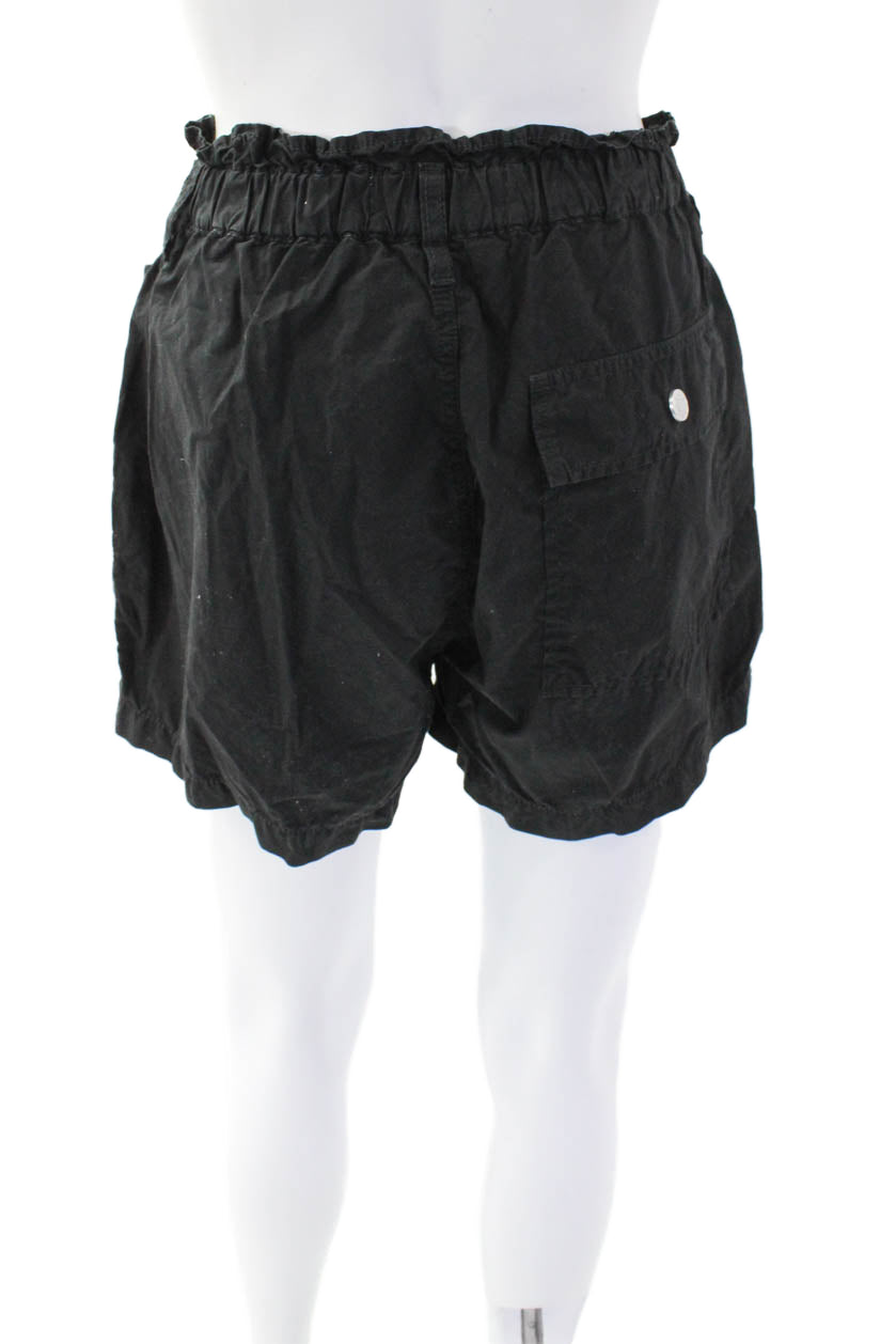 Amo Womens Cotton Buttoned Drawstring Paper Bag Casual Shorts Black Size XS