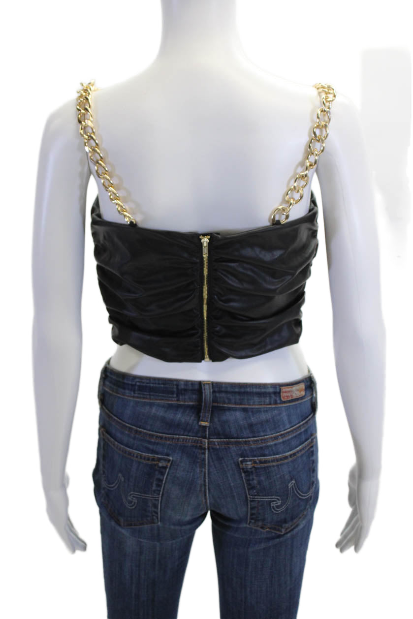 AMUR Womens Biker Cropped Tank Black Sleeveless Zip Size 4