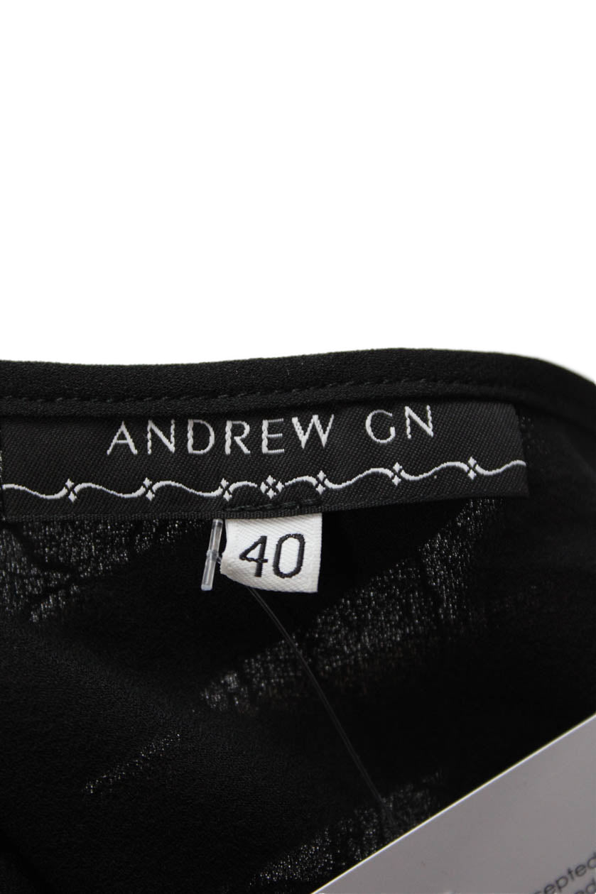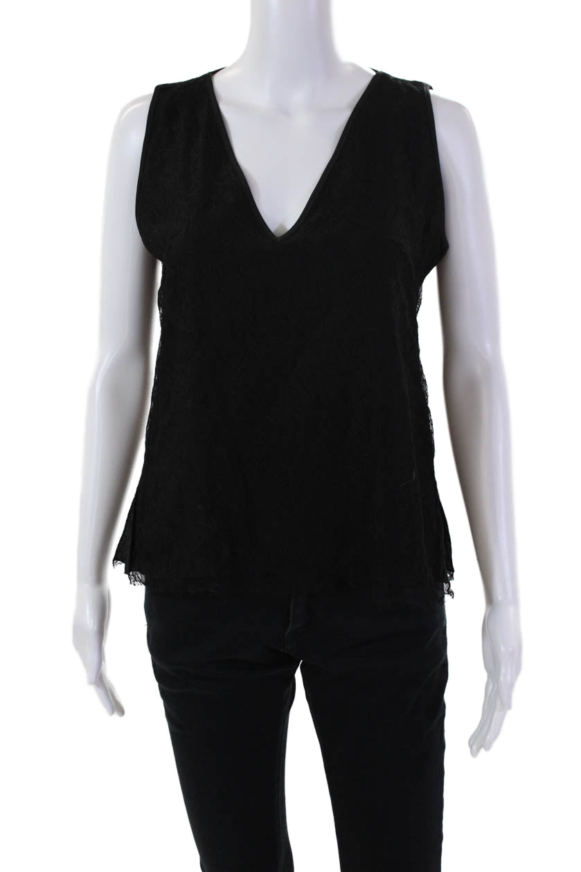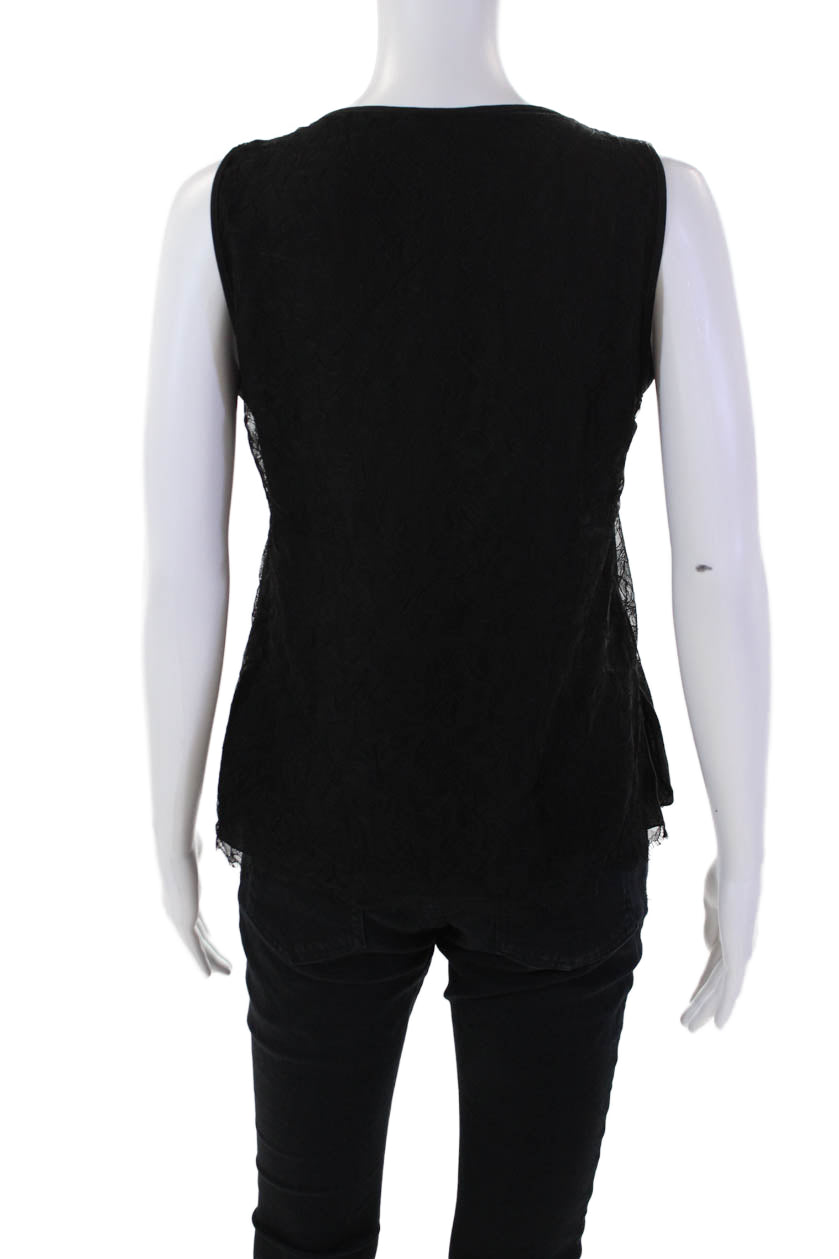 Andrew Gn Womens Sleeveless V Neck Lace Overlay Boxy Top Black Size IT 40