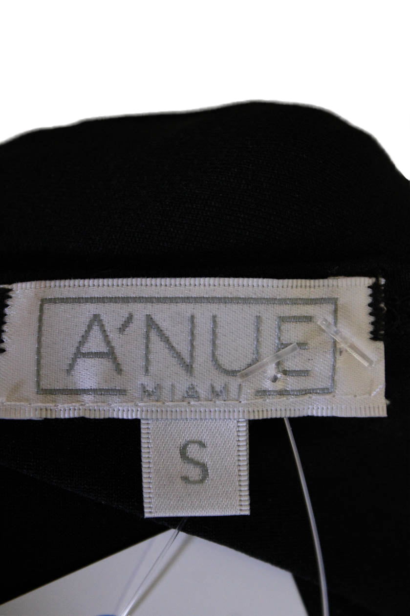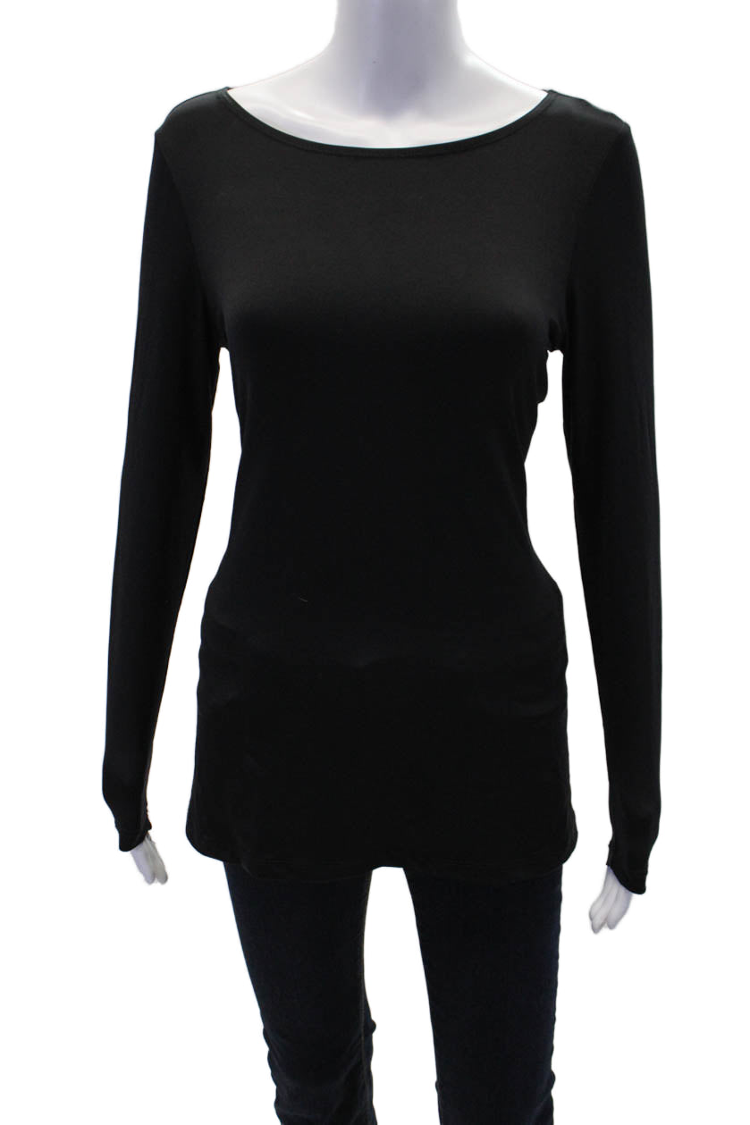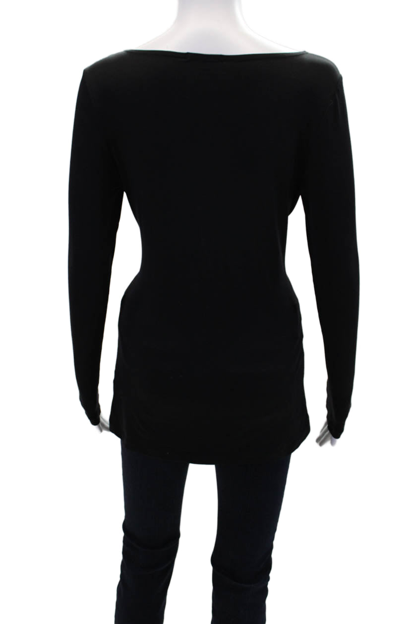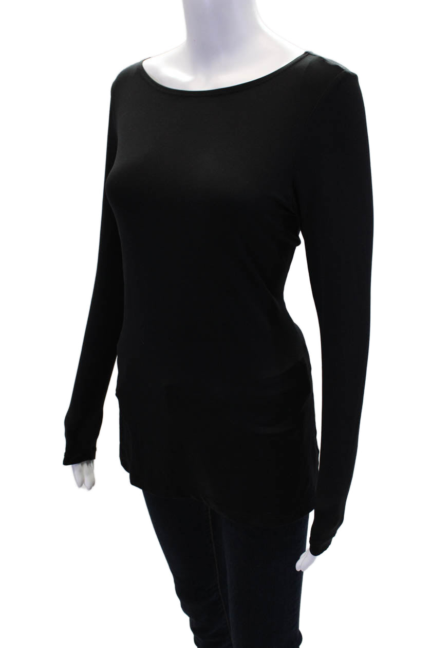 A'Nue Womens Crew Neck Long Sleeve Top Solid Black Size Small