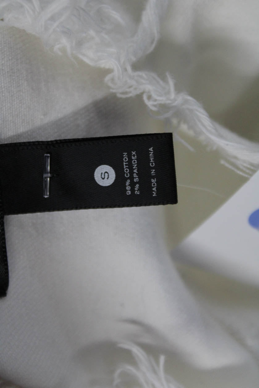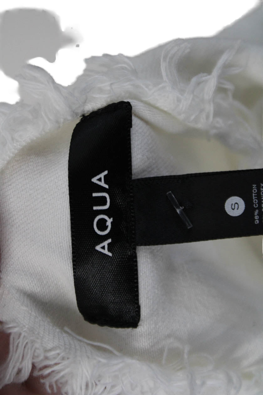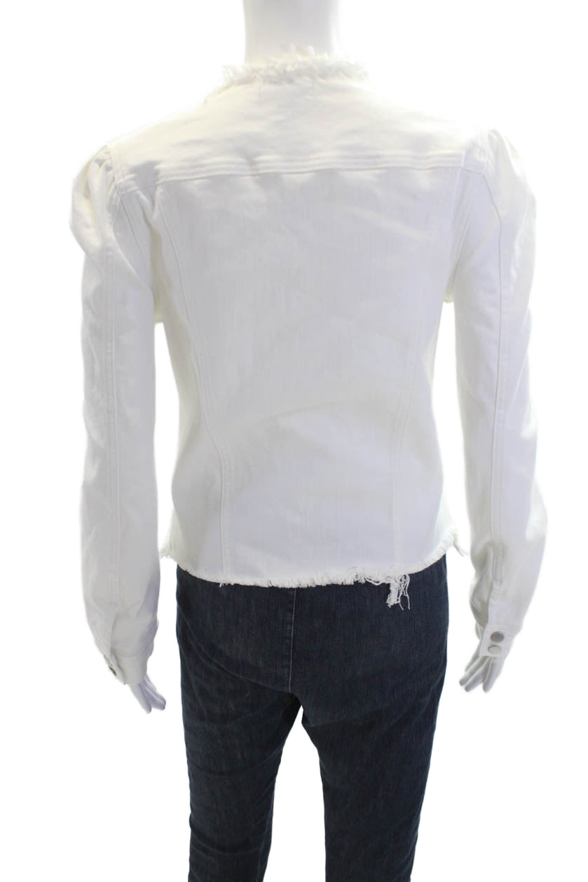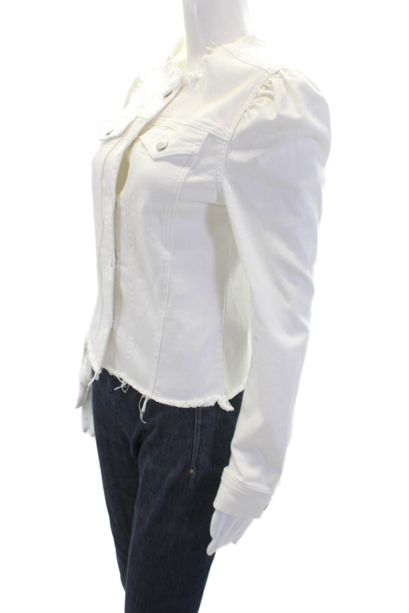 Aqua Womens Denim Button Down Puffy Sleeves Jacket White Cotton Size Small