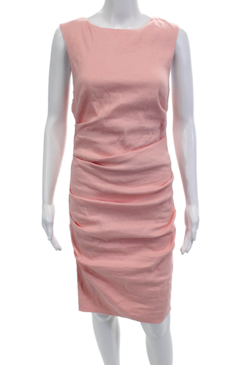 Artelier Nicole Miller Women Sheath Dress Pink Linen Knee Sleeveless Size 6