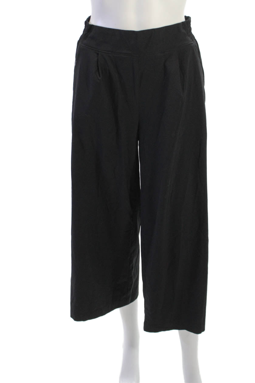 Athleta Women Cropped Black Pants Drawstring Waist Polyester Spandex Size 0
