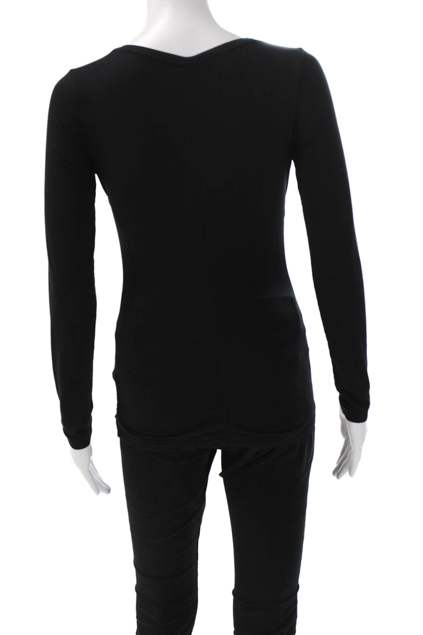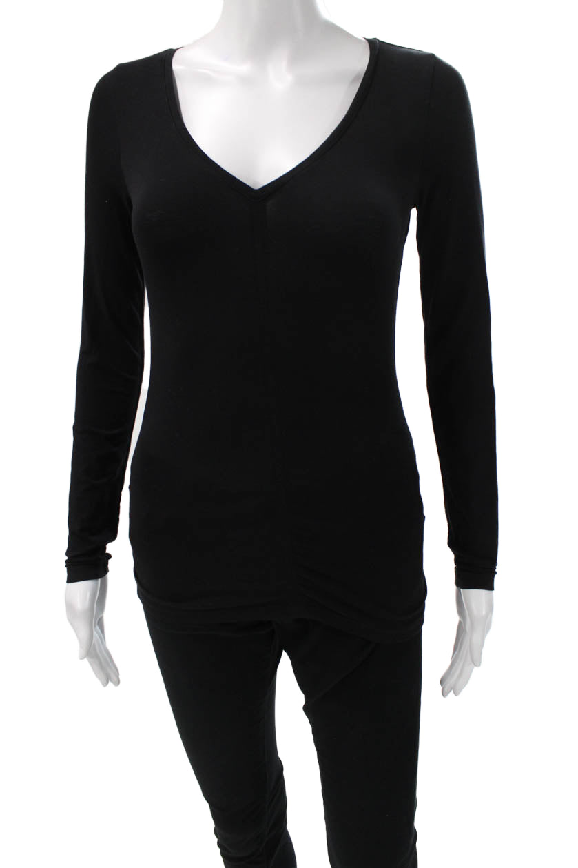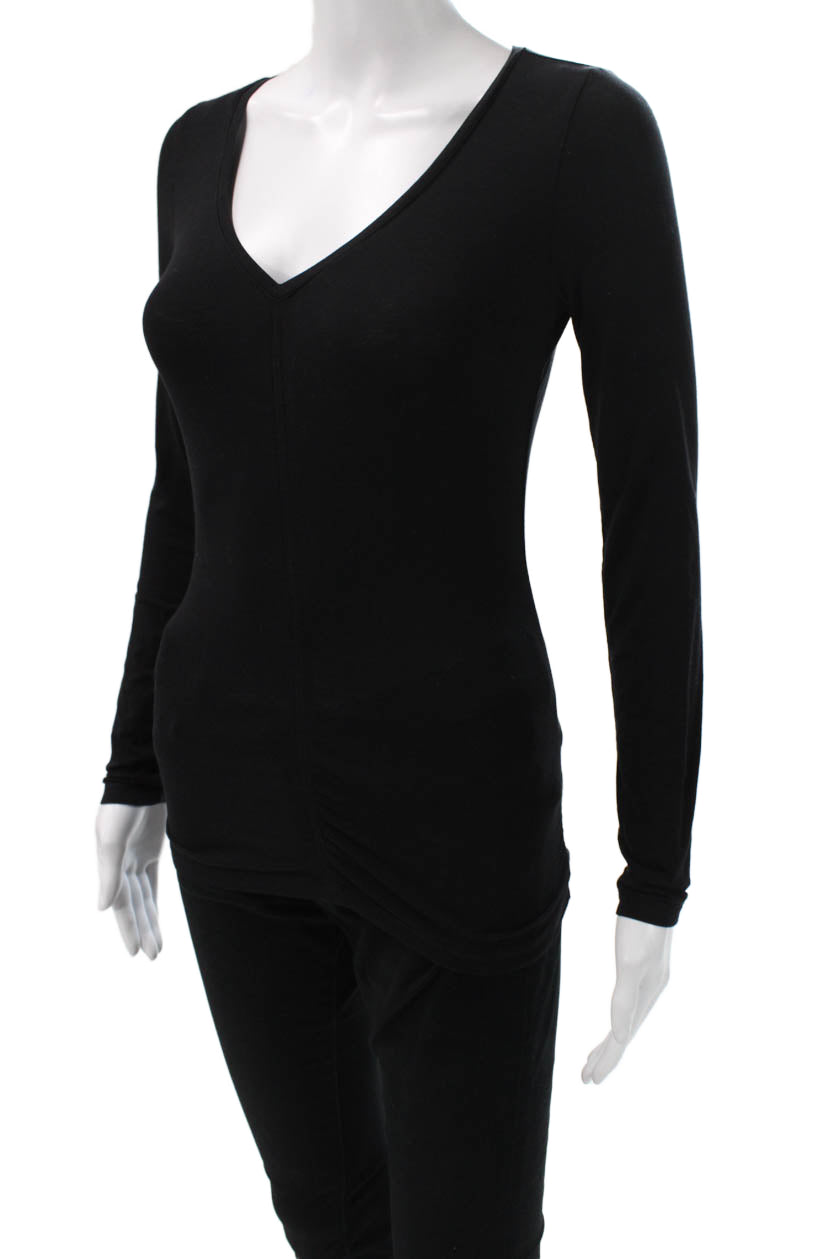 Athleta Womens Black Cotton Blend V-Neck Long Sleeve Basic Top Size 2XS