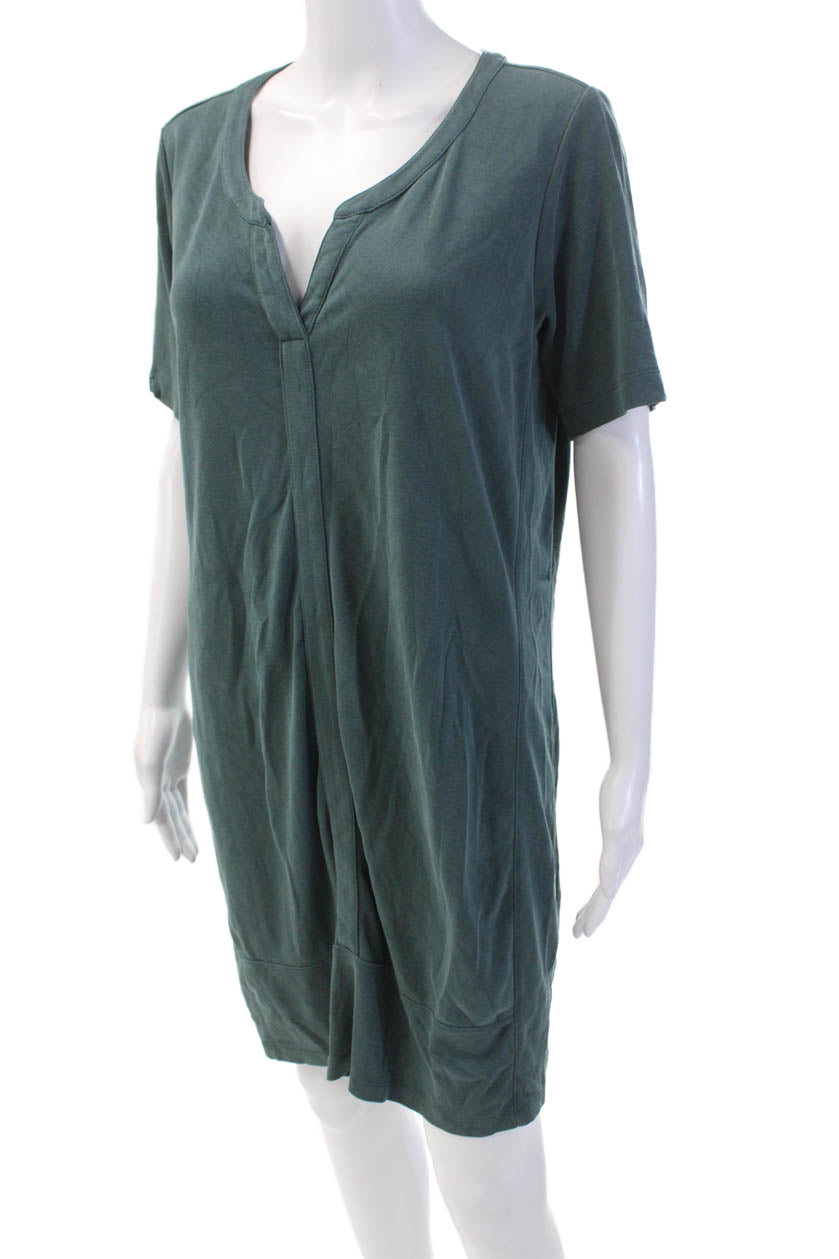 Athleta Womens Short Sleeve V-Neck Pullover Midi Dress Green Size M