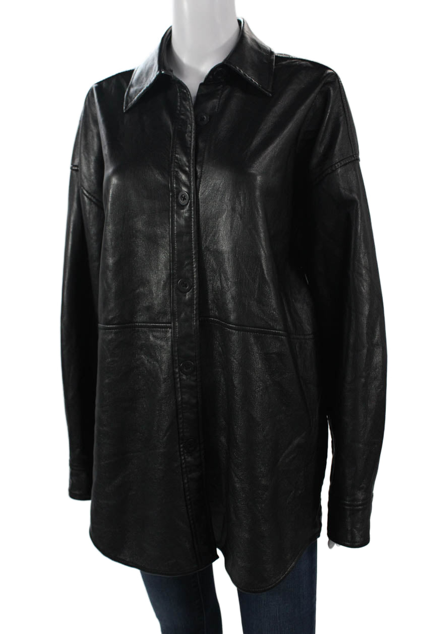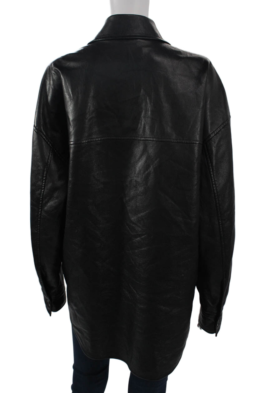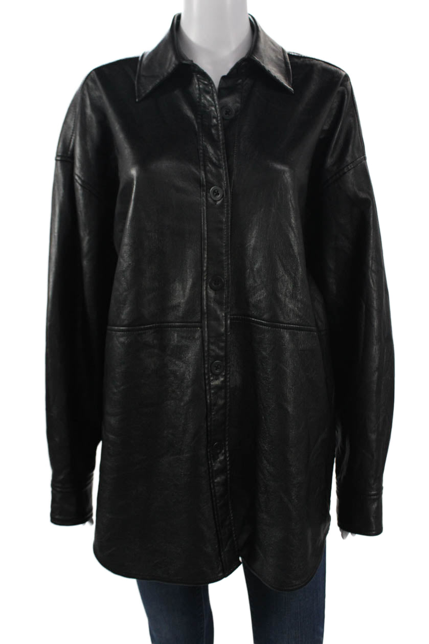 Babaton Women Biker Collared Button Long Sleeve PU Jacket Size M