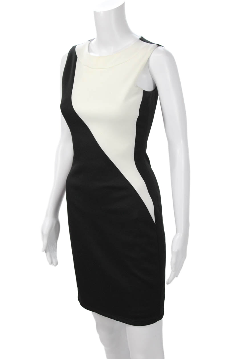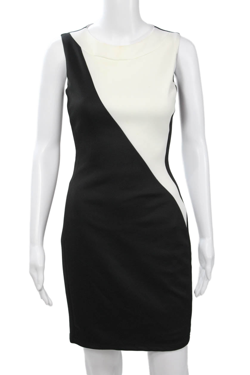 Badgley Mischka Womens Sheath Bodycon Black Sleeveless Round Neck Dress Size 0