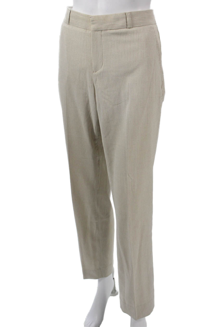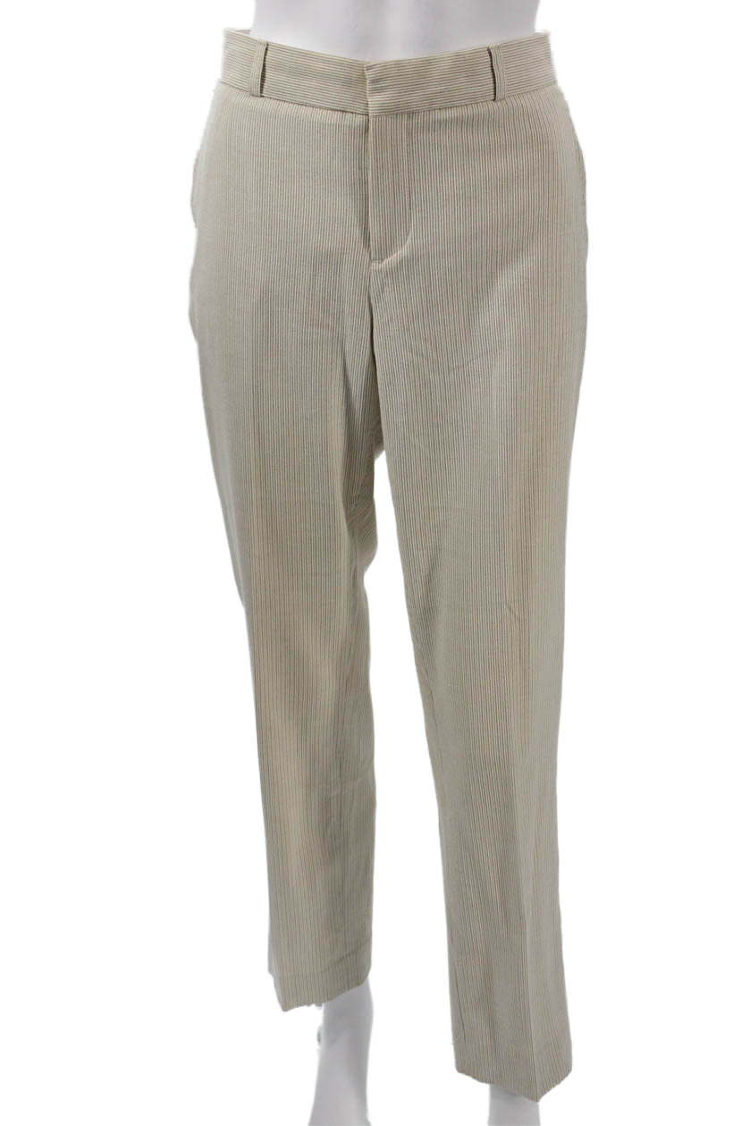 Banana Republic Women Dress Pants Striped Beige Hook & Eye Size 6