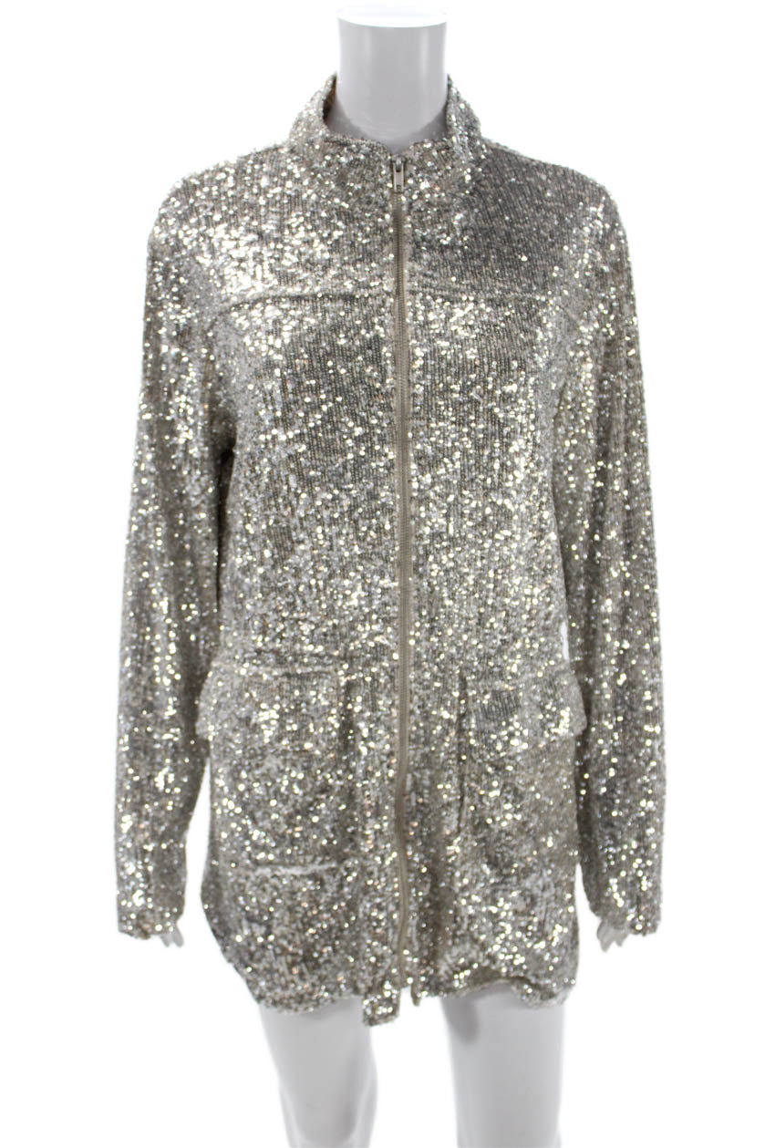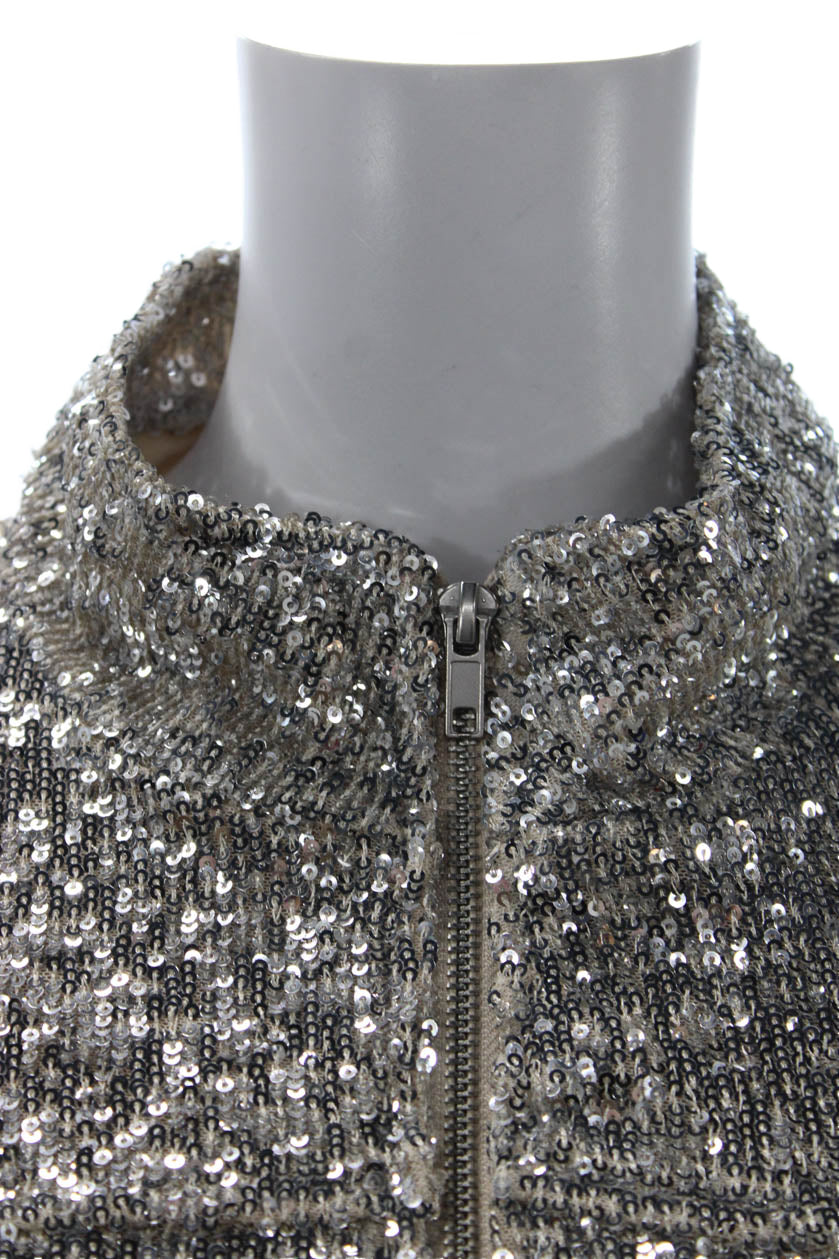 BB Dakota Womens Bomber Jacket Gray High Neck Zip Polyester Size S
