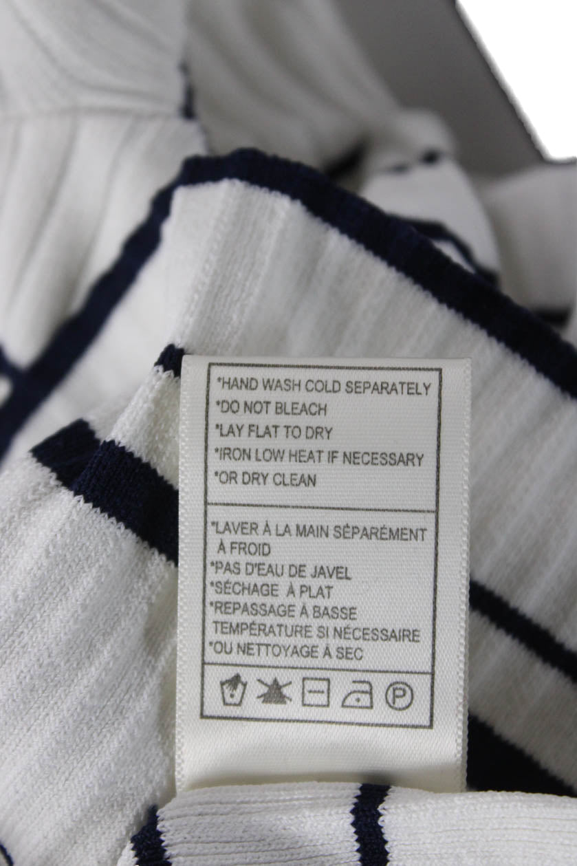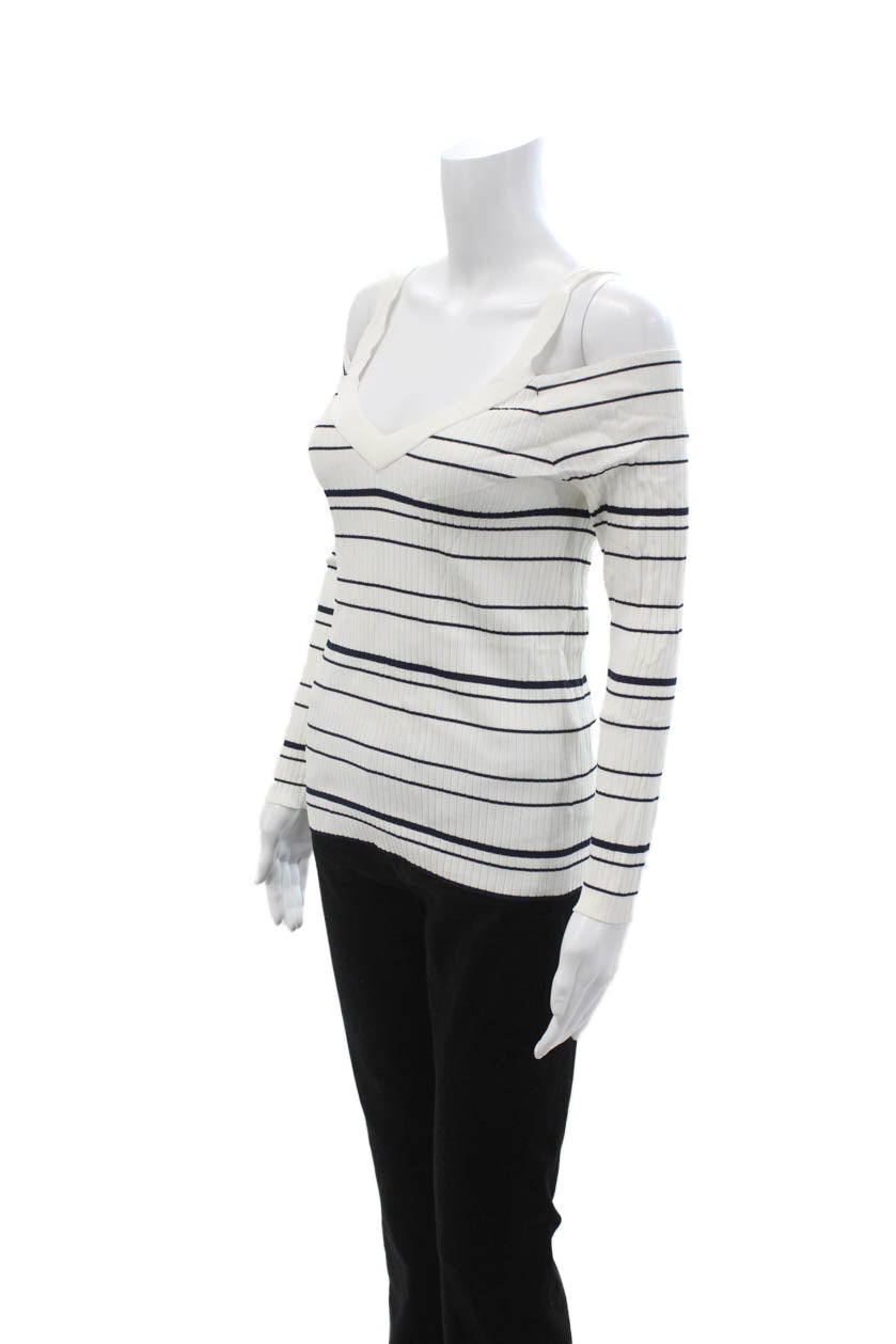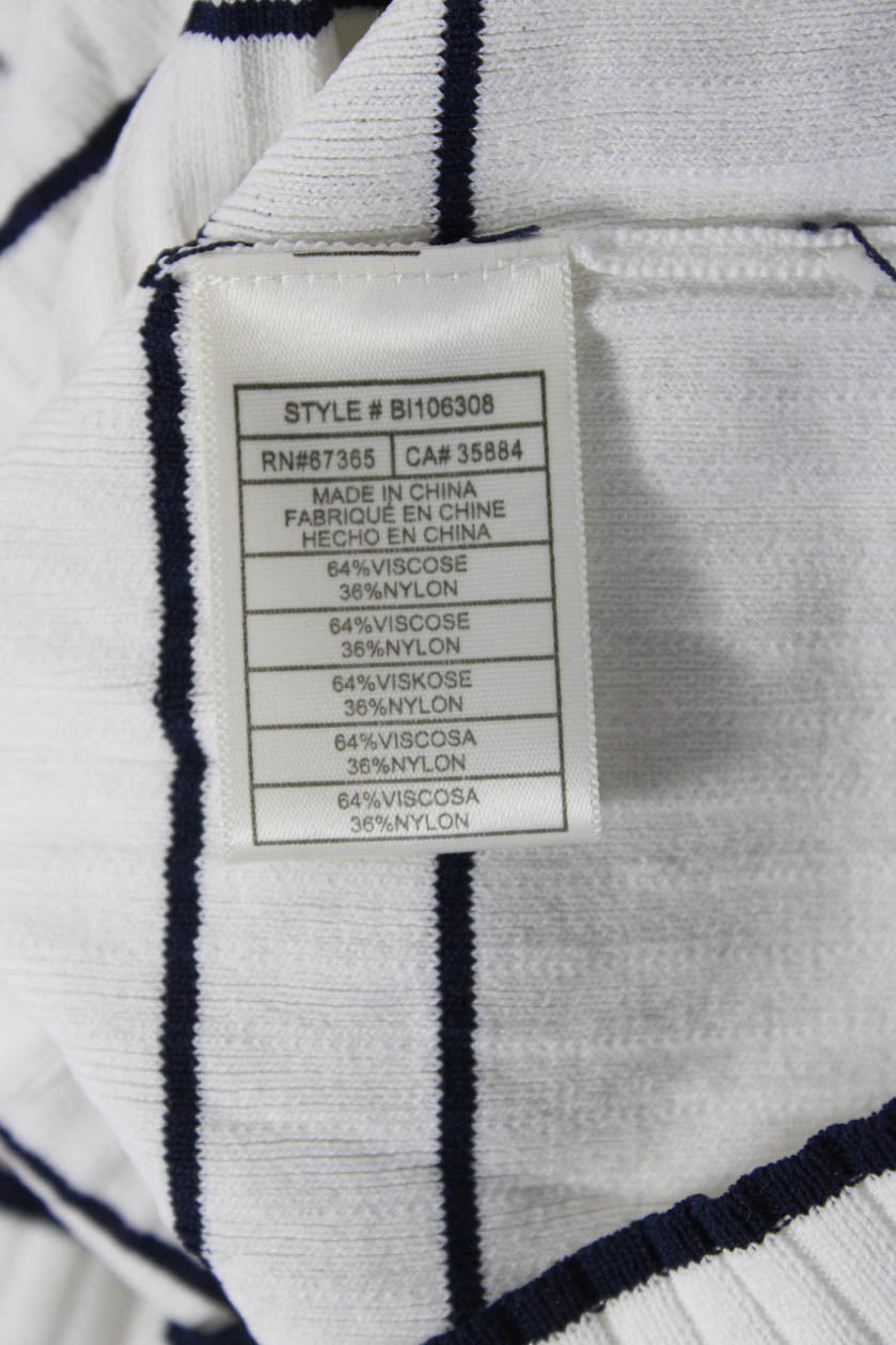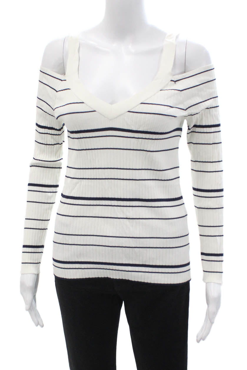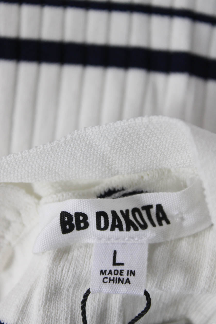BB Dakota Womens White Striped V Neck Long Sleeve Top Size L