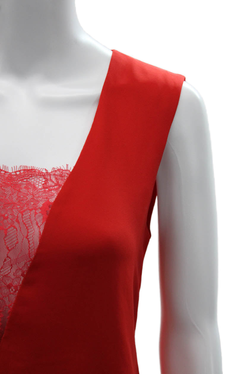 BCBGMAXAZRIA Women Camisole Red V-Neck Polyester Blend Sleeveless Size 2XS