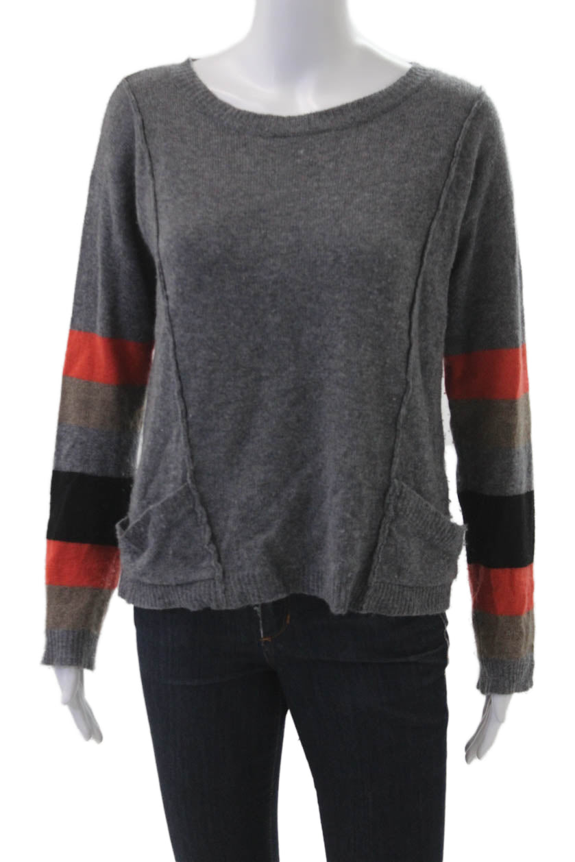 Bibelot Unisex Dark Gray Cashmere Striped Crewneck Pullover Sweater Size XS