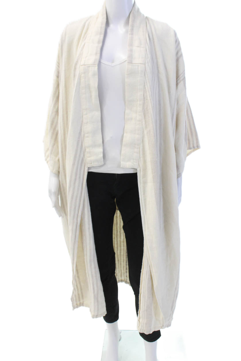Boca Terry Womens Linen Striped Open Front Coat White Beige Size One Size