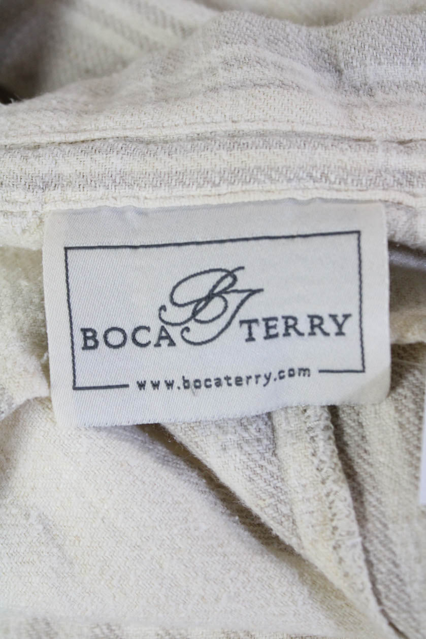• Boca Terry Womens Linen Striped Open Front Coat White Beige Size One Size