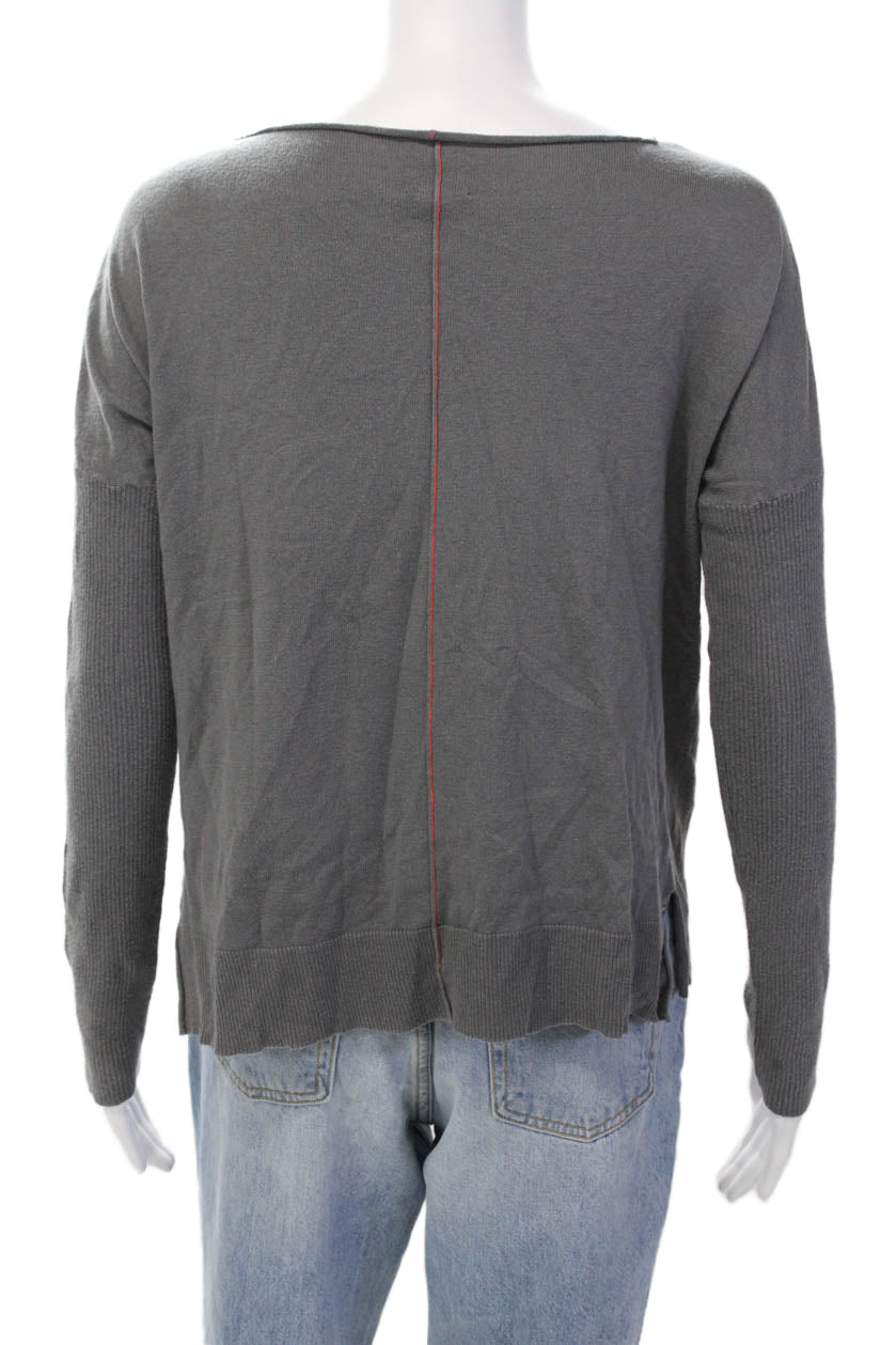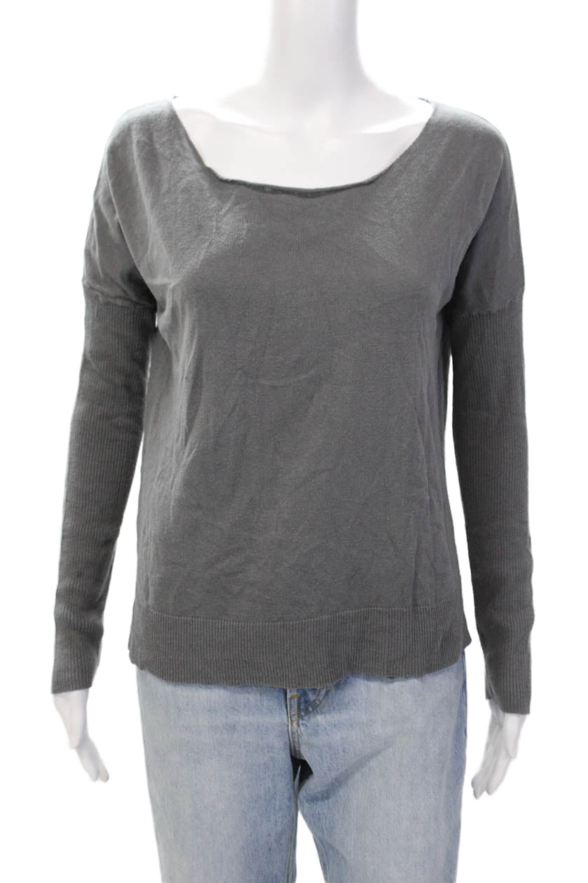 Brochu Walker Womens Cotton Knit Round Neck Pullover Sweater Top Gray Size M