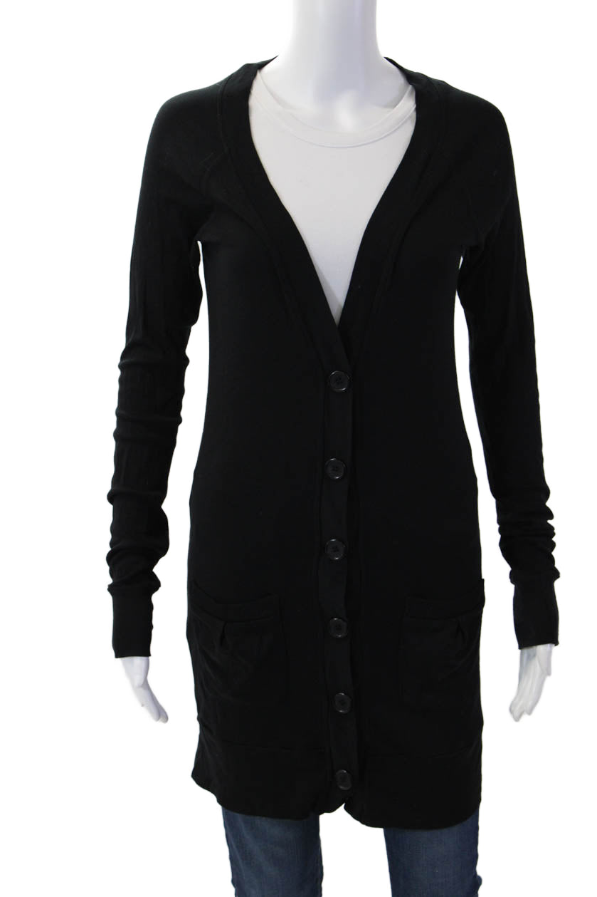 C&C California Women Black V-Neck Button Cardigan Size XS